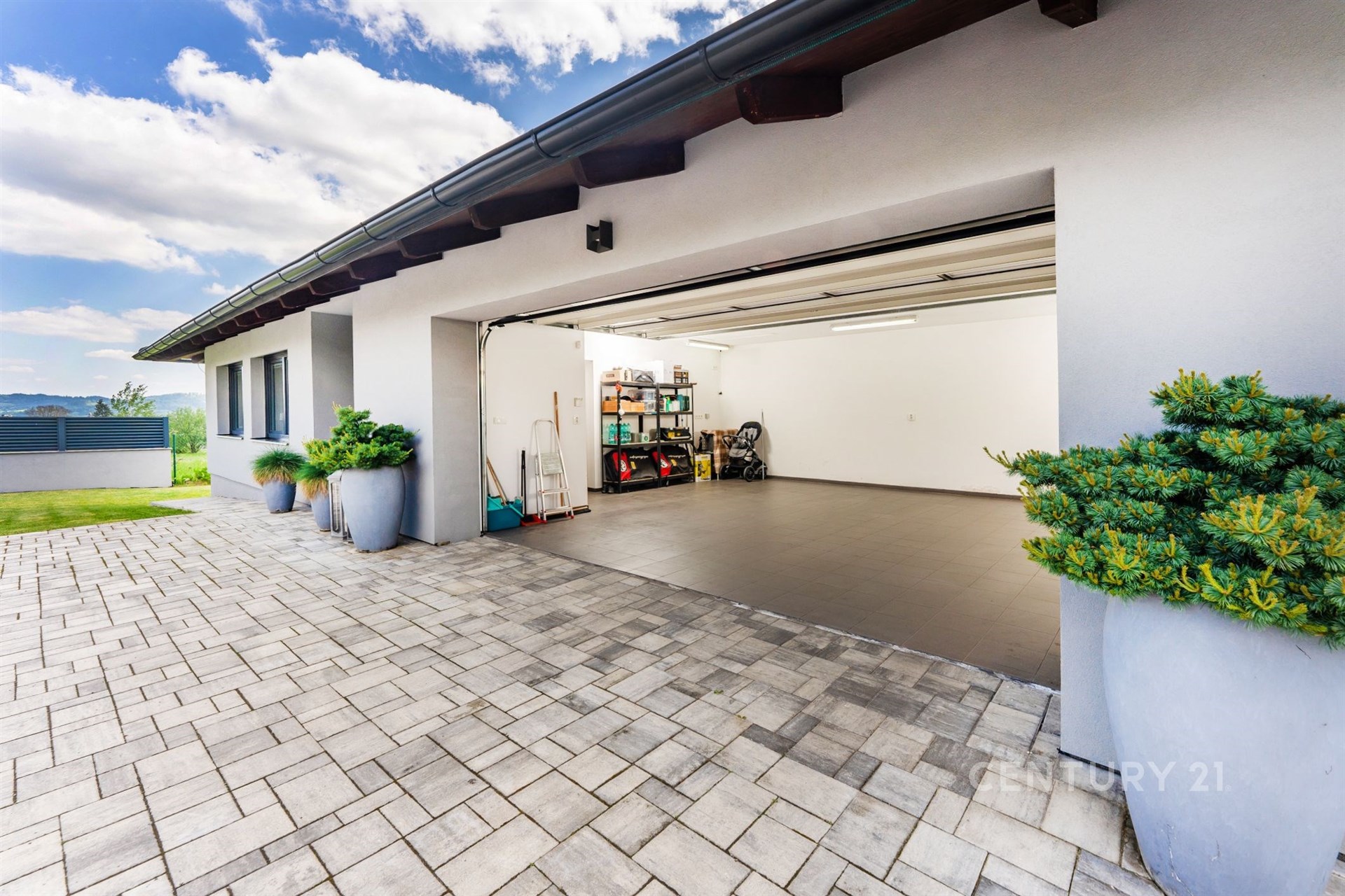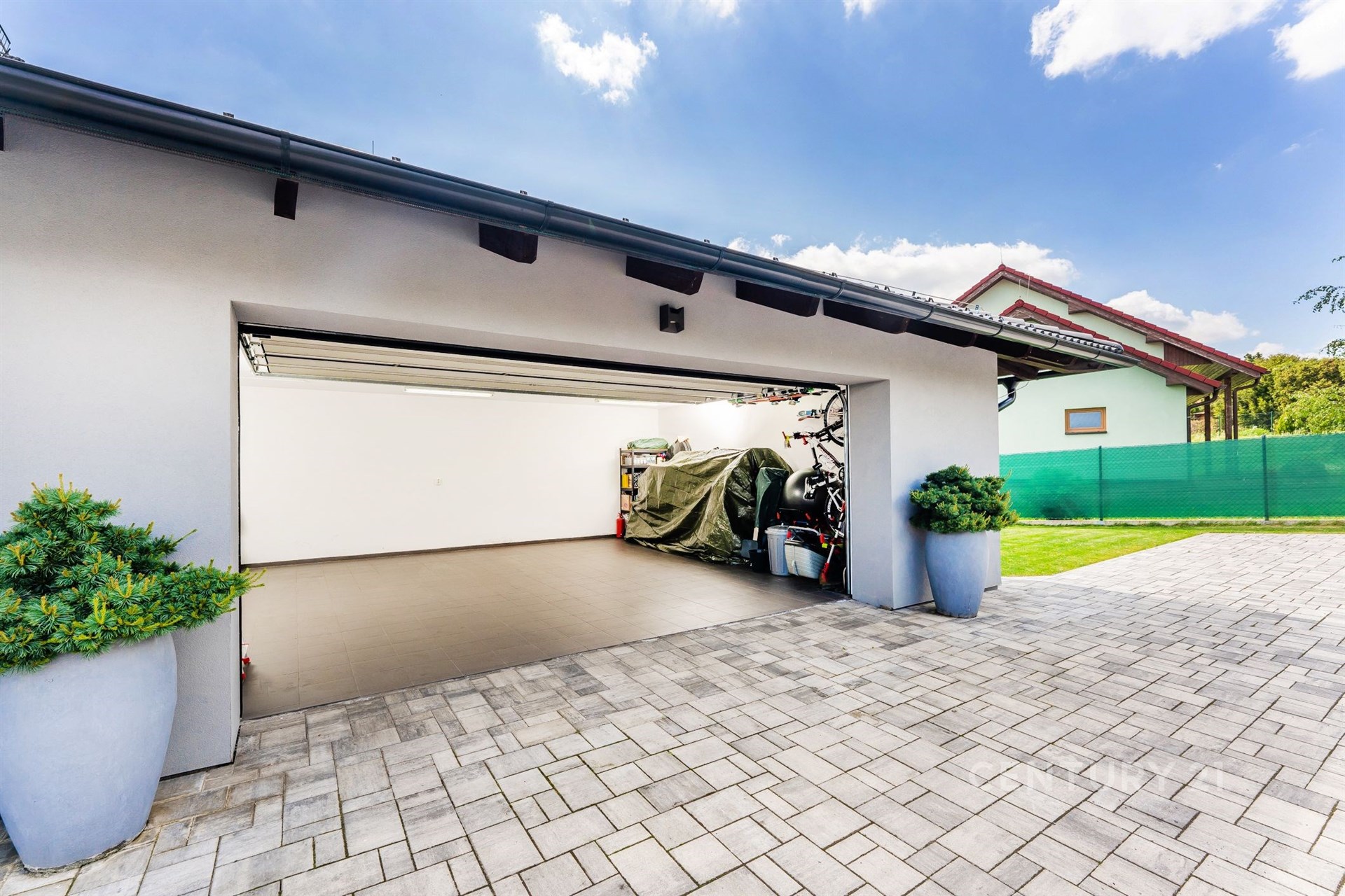 Nemusíte se bát ani o parkování, jelikož k domu náleží rozlehlá garáž pro 2 auta + 2 motorky. A stále poskytne dostatek prostoru i pro dílenský kout. Objemný podkrovní prostor pak obsáhne vše, co běžně není potřeba mít po ruce.