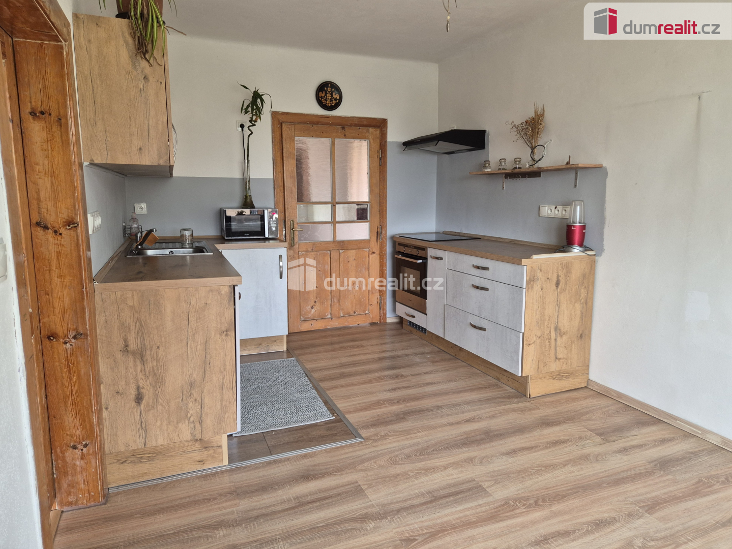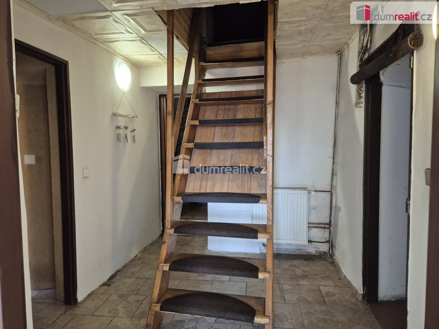 V přízemí nalezneme byt 2+1 s koupelnou se sprchovým koutem, umyvadlem a WC, a kotelnu s moderním kotlem na tuhá paliva. Po dřevěném schodišti se pak dostaneme do bytu o dispozici 3+1+úložný prostor s koupelnou s vanou a umyvadlem a samostatným WC, o cca 90 m² podlahové plochy.