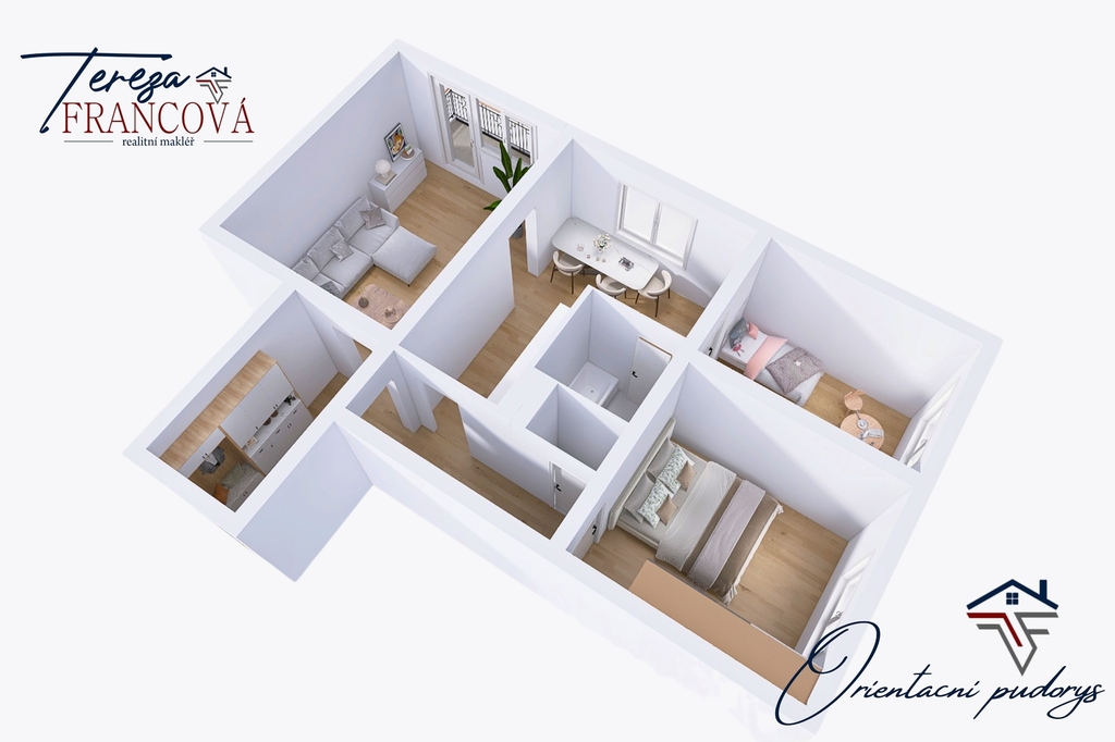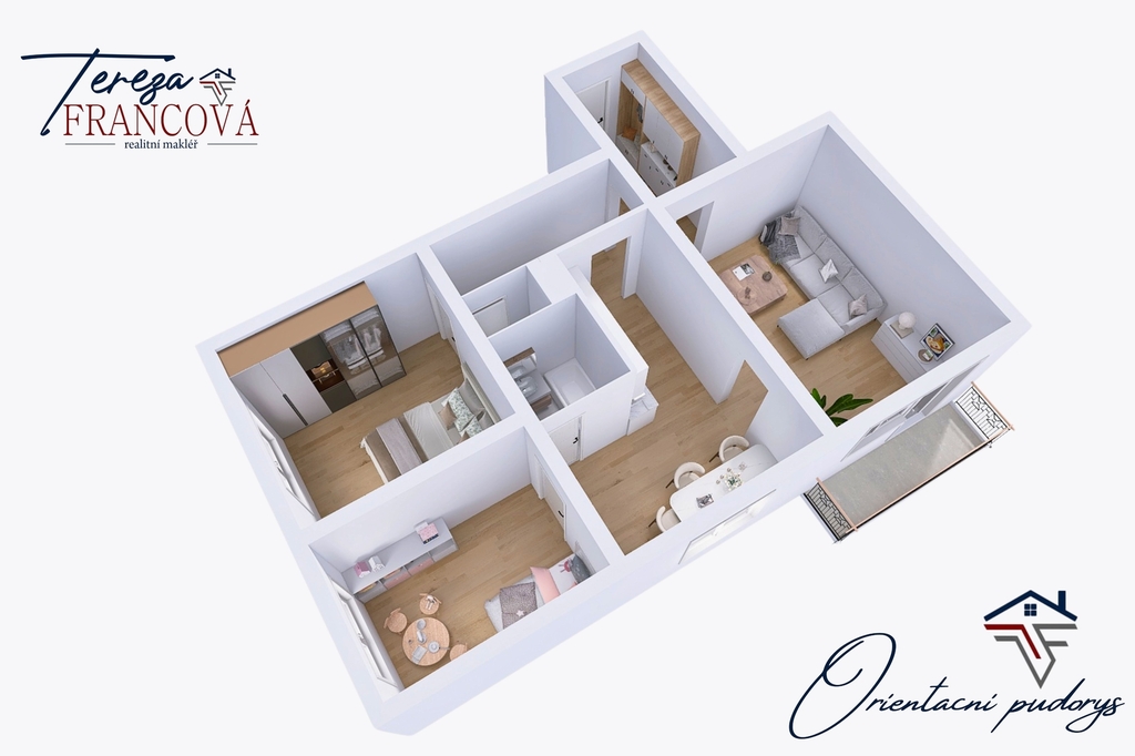 Byt vyniká promyšlenou dispozicí se třemi samostatnými, neprůchozími pokoji, která zajišťuje dostatek soukromí a komfortní užívání. Právě toto uspořádání je ideální nejen pro rodinné bydlení, ale i pro efektivní pronájem více osobám.