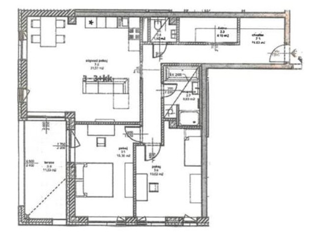 | Dispozice/podlahová plocha: | 3+kk/106 m² |