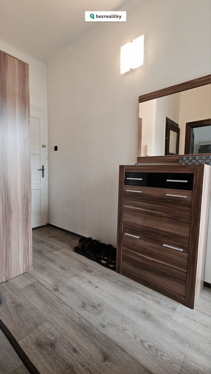 Byt se prodává i s vybavením: kuchyňská linka, indukční varná deska, lednice, stůl + židle, postel, skříň, elektrické konvektory.