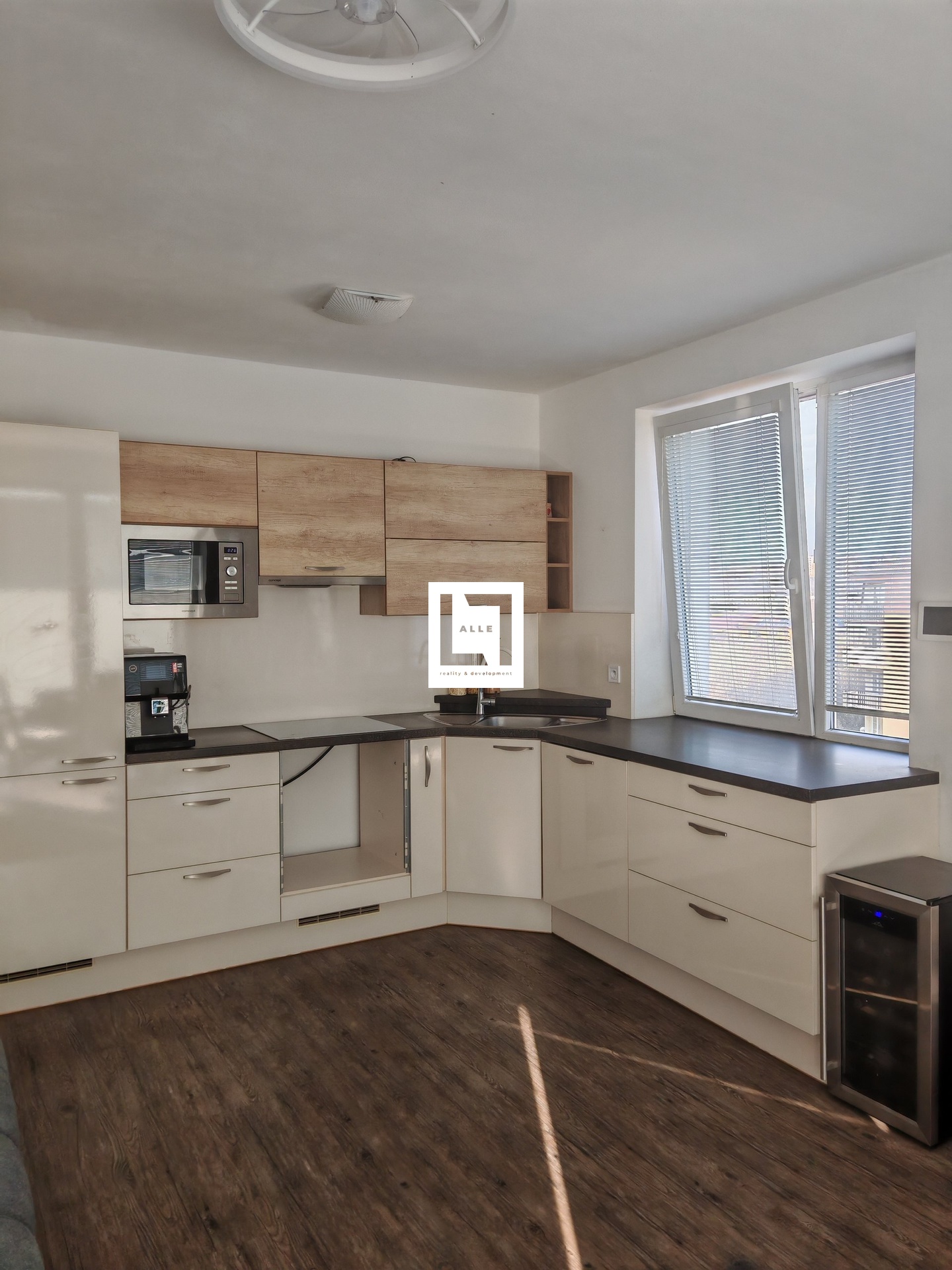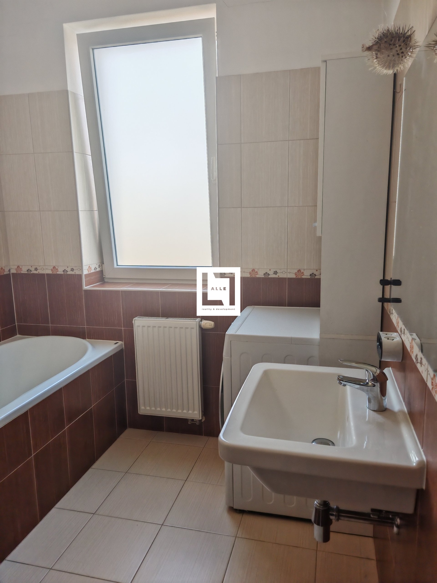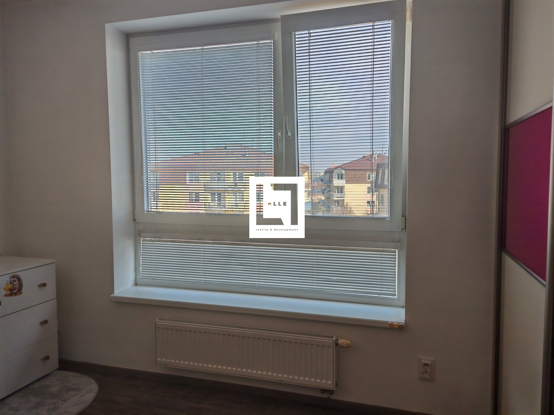 Přes prostornou chodbu vcházíte do obývacího pokoje s kuchyňskou linkou, vybavenou varnou deskou, digestoří, troubou (momentálně dochází k výměně), ledničkou s mrazákem a zabudovanou mikrovlnnou troubou. Z obývacího pokoje je pohodlný vstup na balkon. V bytě je dále ložnice s vestavěnou skříní a samostatná šatna. Koupelna má vanu, umyvadlo, vysokou úložnou skříňku, pračku, otopný žebřík, ale i radiátor umístěný pod plně otevíravým oknem, které zajistí dostatečné větrání.