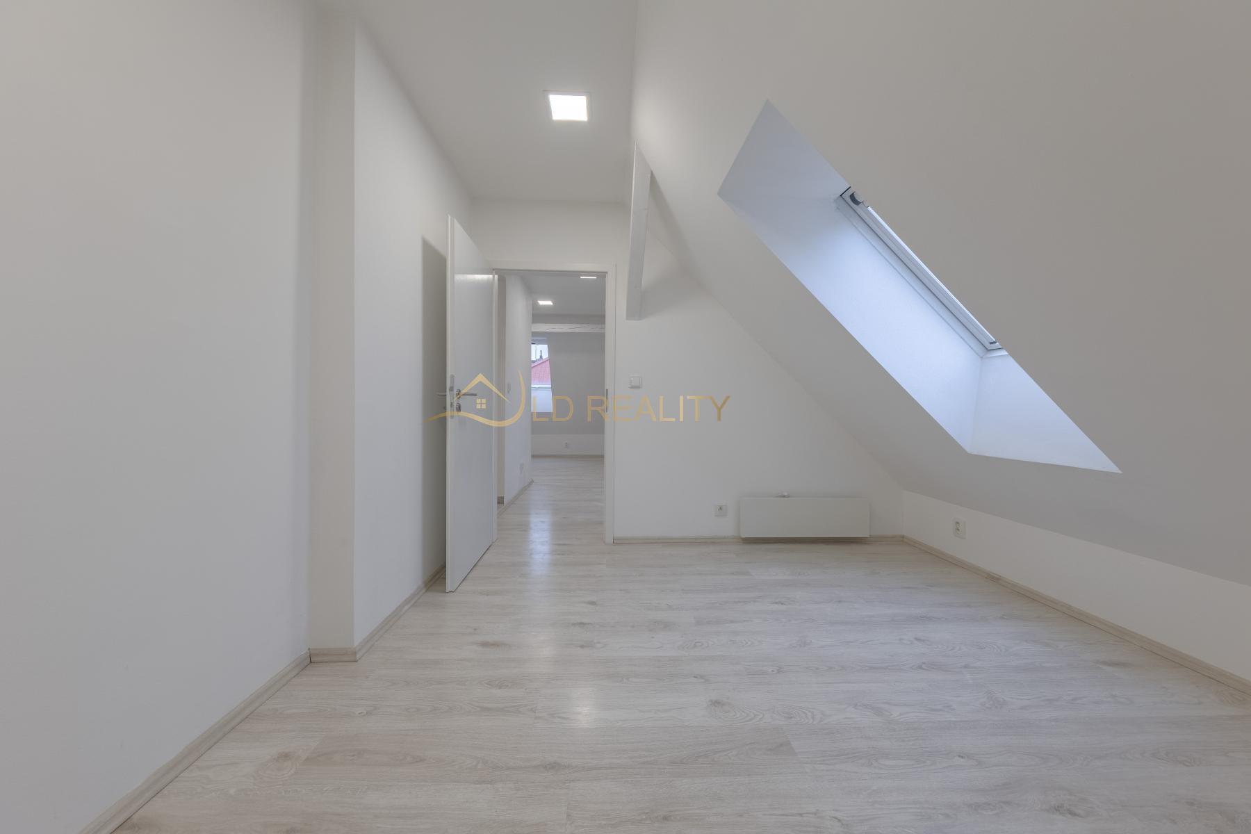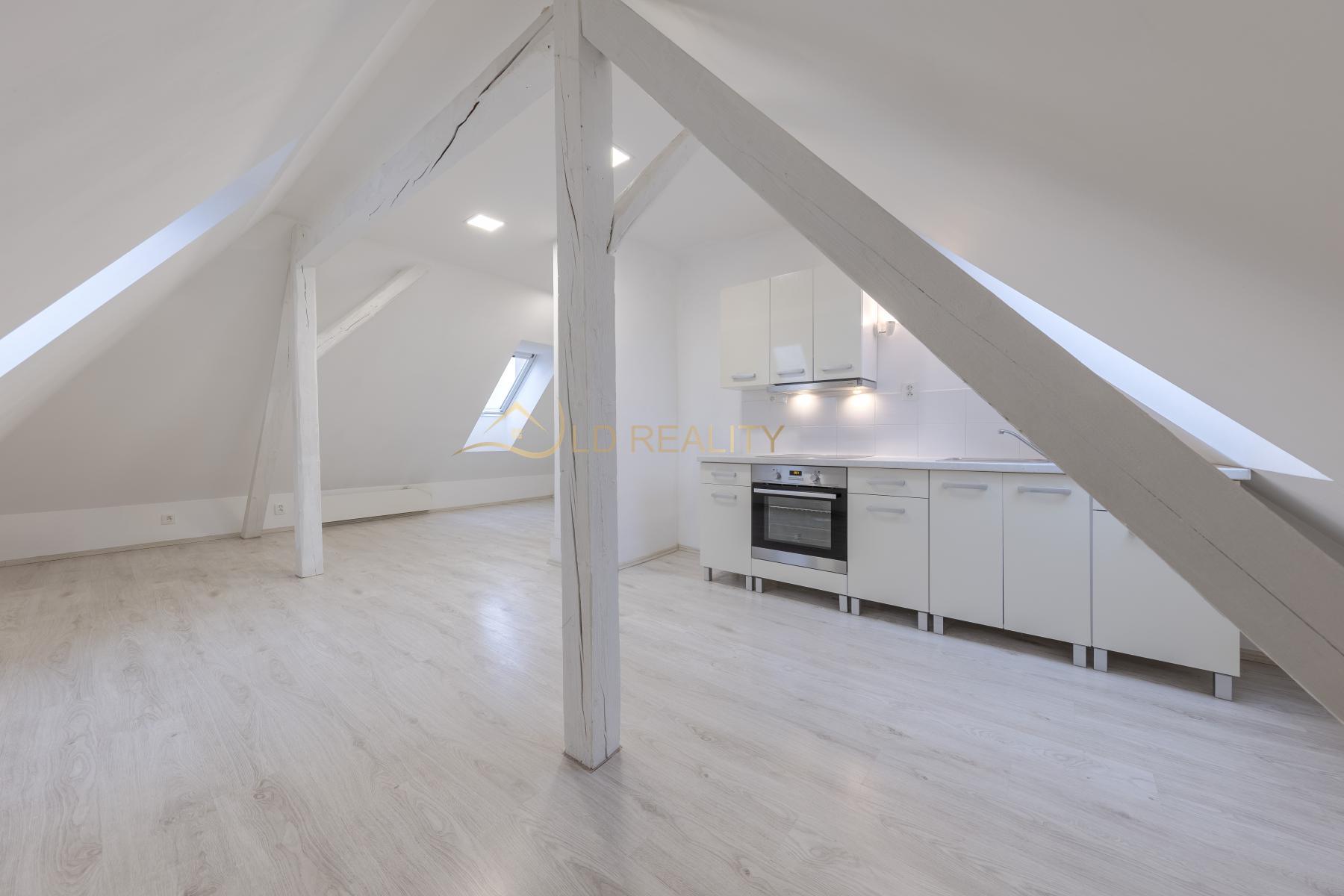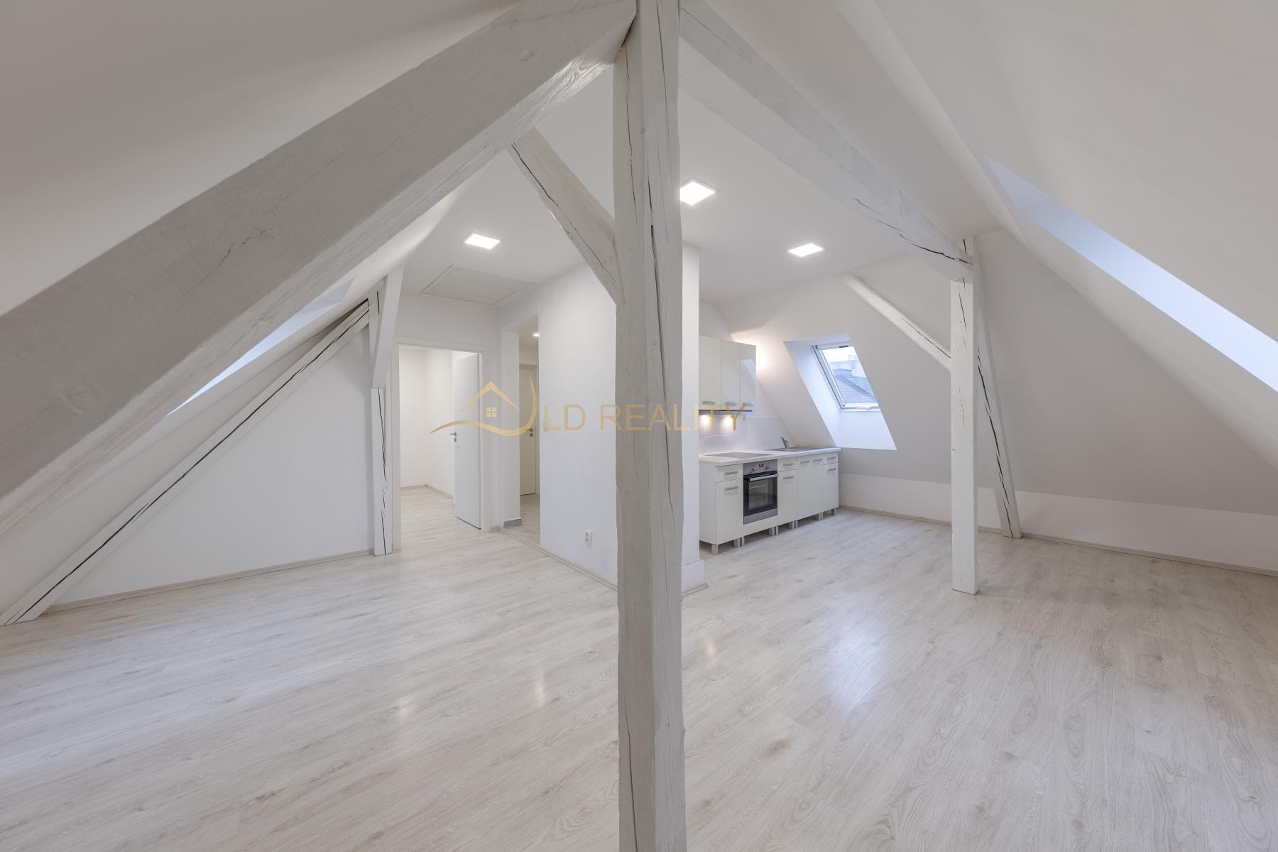 Byt byl vybudován jako půdní vestavba v roce 2018 a nabízí moderní a praktické řešení prostoru pro pohodlné bydlení. Interiér tvoří obývací pokoj s kuchyňským koutem, samostatná ložnice a koupelna se sprchovým koutem a toaletou.