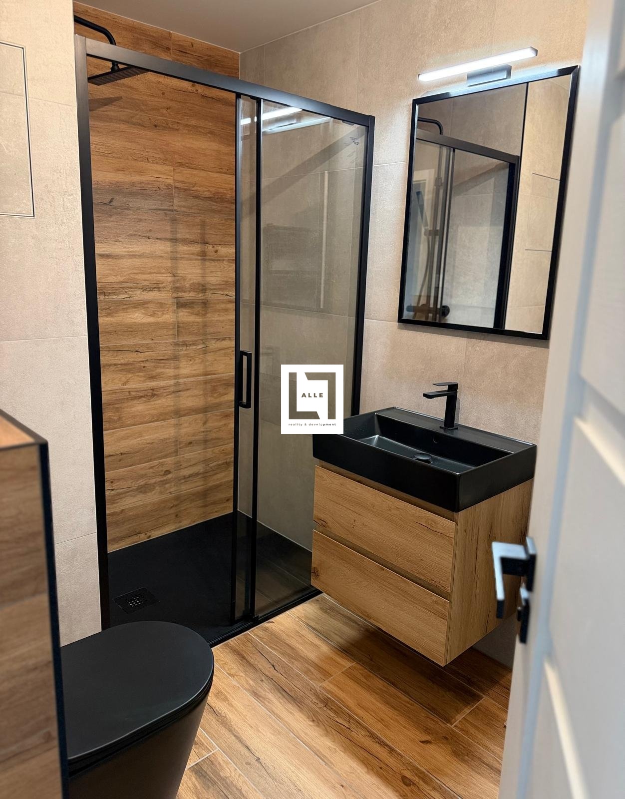 horké letní dny. Koupelna je laděna v moderním stylu a je vybavena