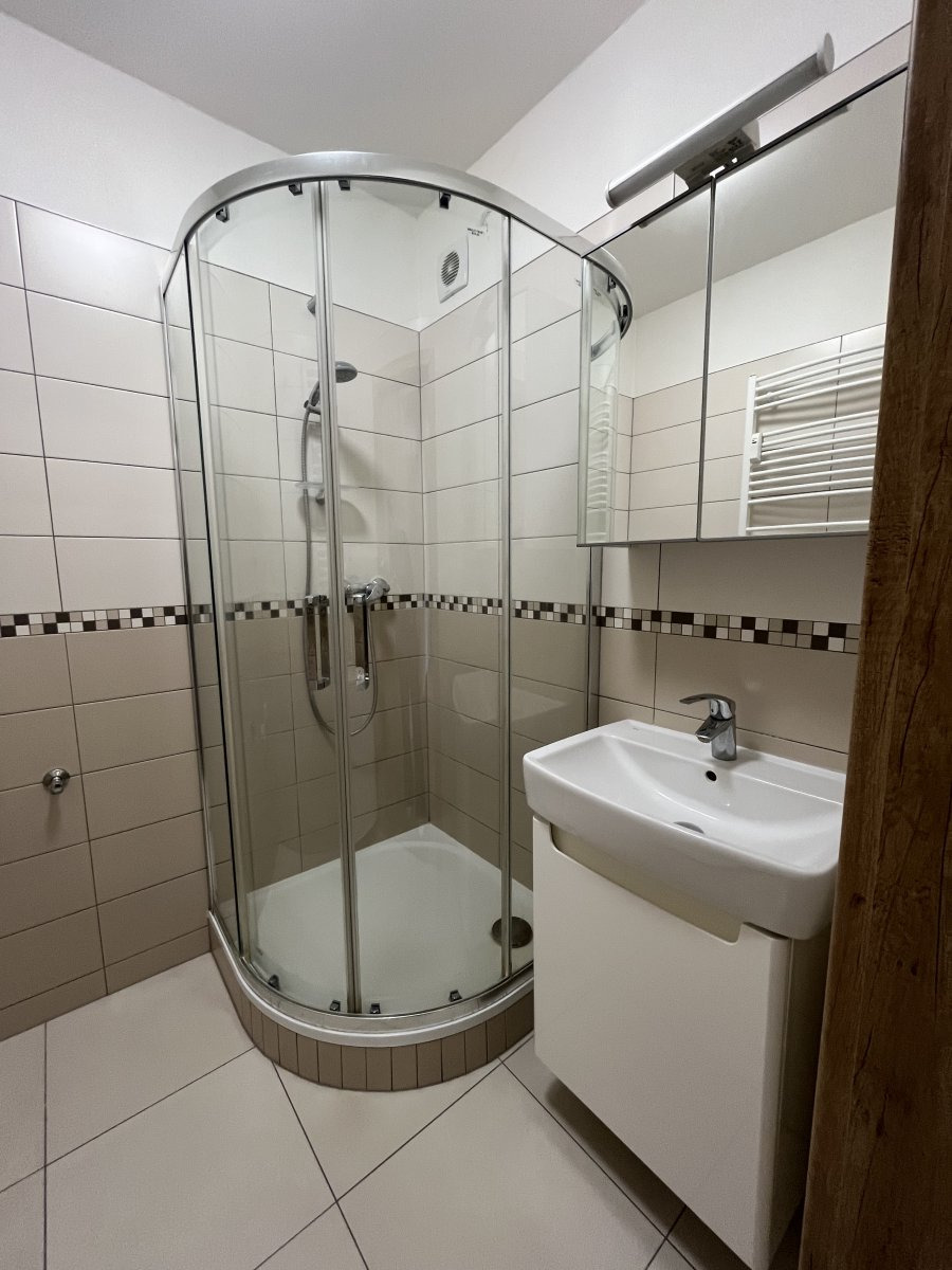 Dispozice 2+1 nabízí příjemně velké, vzdušné, neprůchozí místnosti a praktické uspořádání pro každodenní život i práci z domova. Byt je částečně vybavený, takže se můžete rychle zabydlet a zároveň si interiér doladit podle svého stylu, v případě potřeby je možné vybavení odstěhovat. Kuchyň je plně vybavená vestavěnými spotřebiči, jídelním stolem se židlemi s krásným výhledem do vnitrobloku. Dlouhá prostorná chodba je vybavena vestavnými skříněmi. WC je samostatně. Koupelna se sprchovým koutem nabízí dostatek místa pro pračku, kterou lze na žádost nájemce dokoupit. O tepelnou pohodu se postará ústřední dálkové vytápění, které zajišťuje stabilní komfort během celé sezóny.