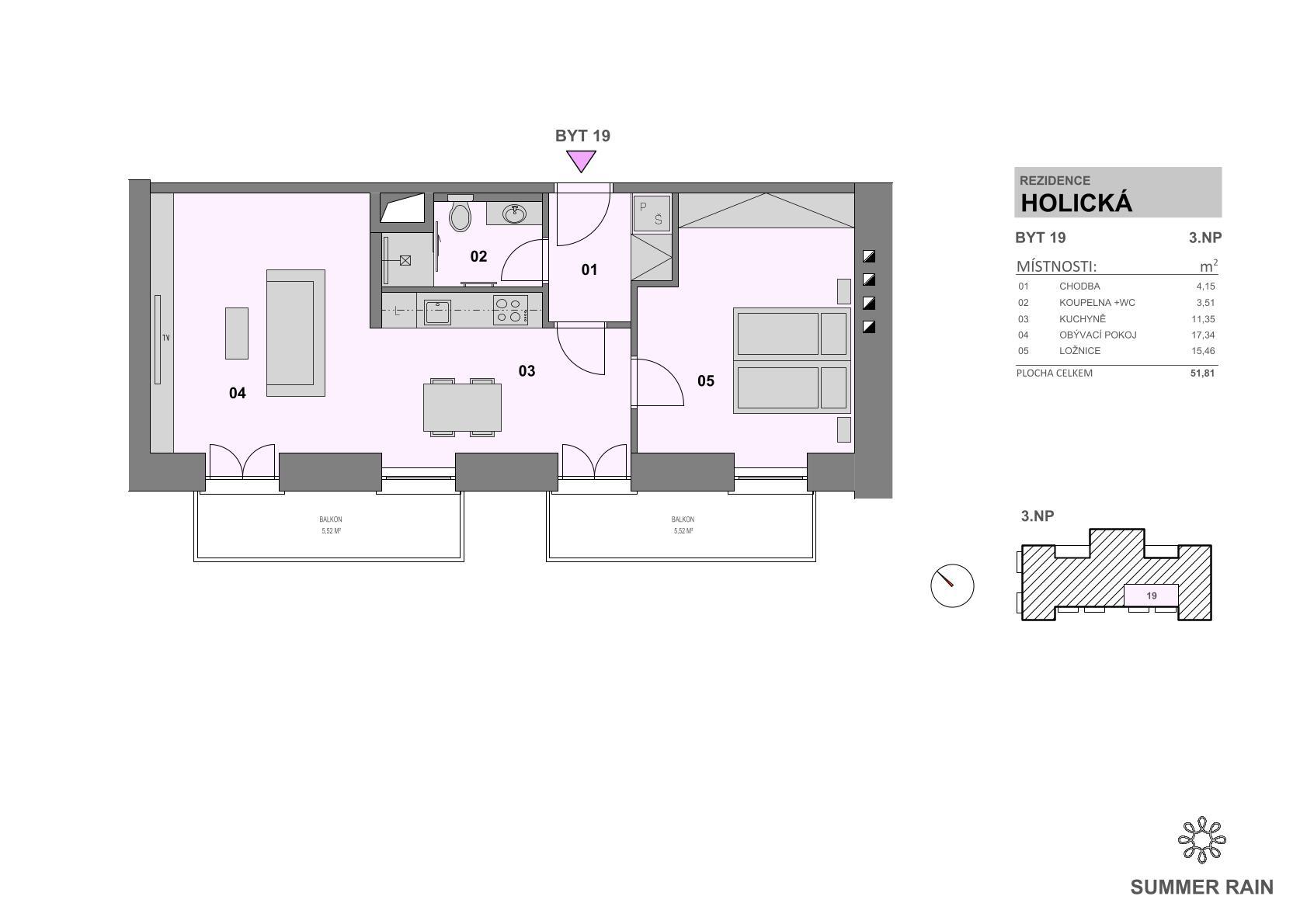 Nabízíme k pronájmu moderně zrekonstruovaný byt 2+kk o velikosti 52 m, situovaný ve druhém patře Rezidence Violka.