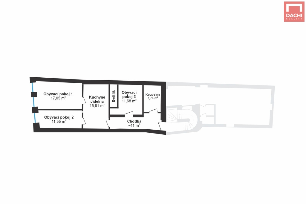 Nabízíme k pronájmu prostorný byt o dispozici 3+1 a výměře cca 75 m², situovaný v centru Olomouce na ulici Ztracená.