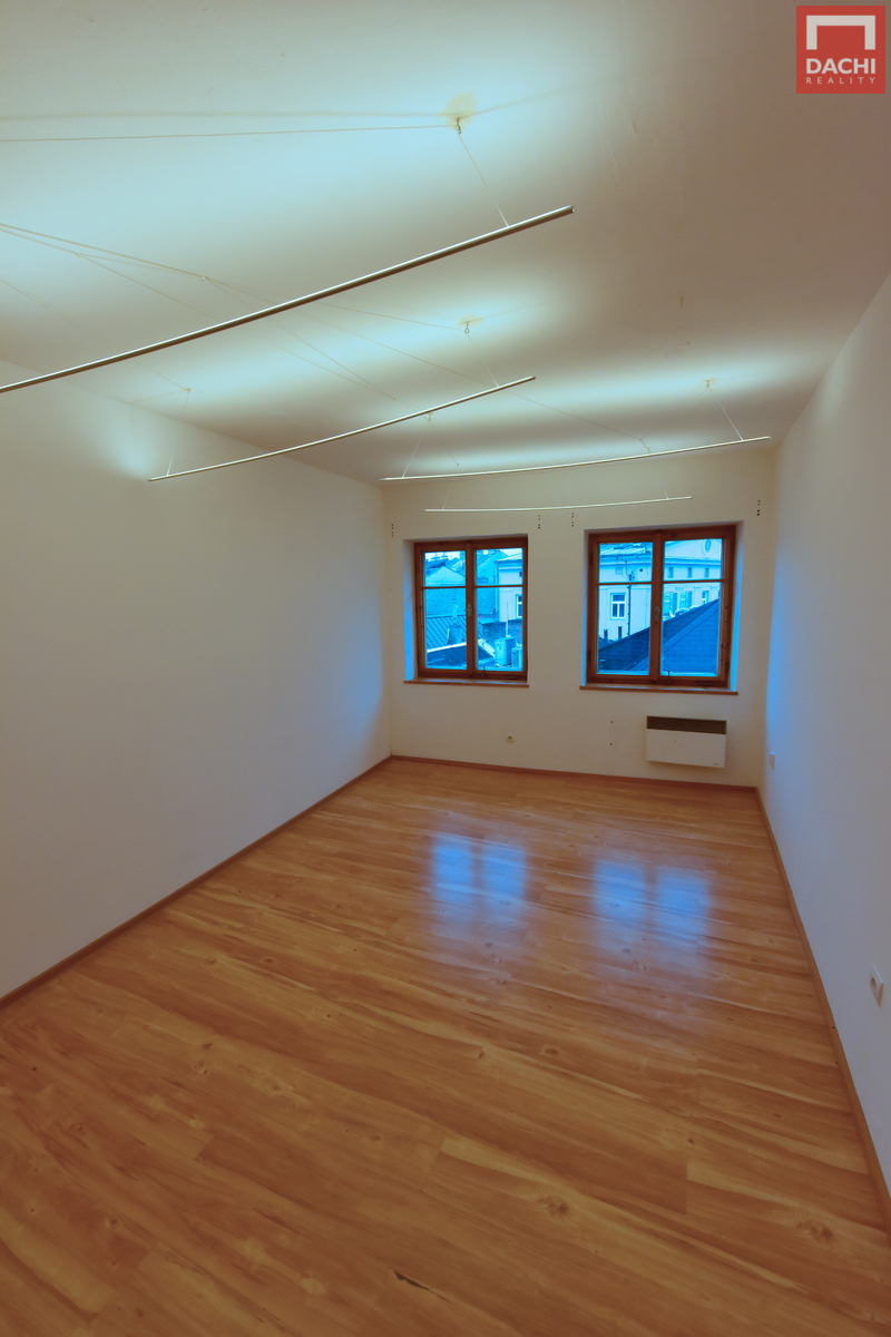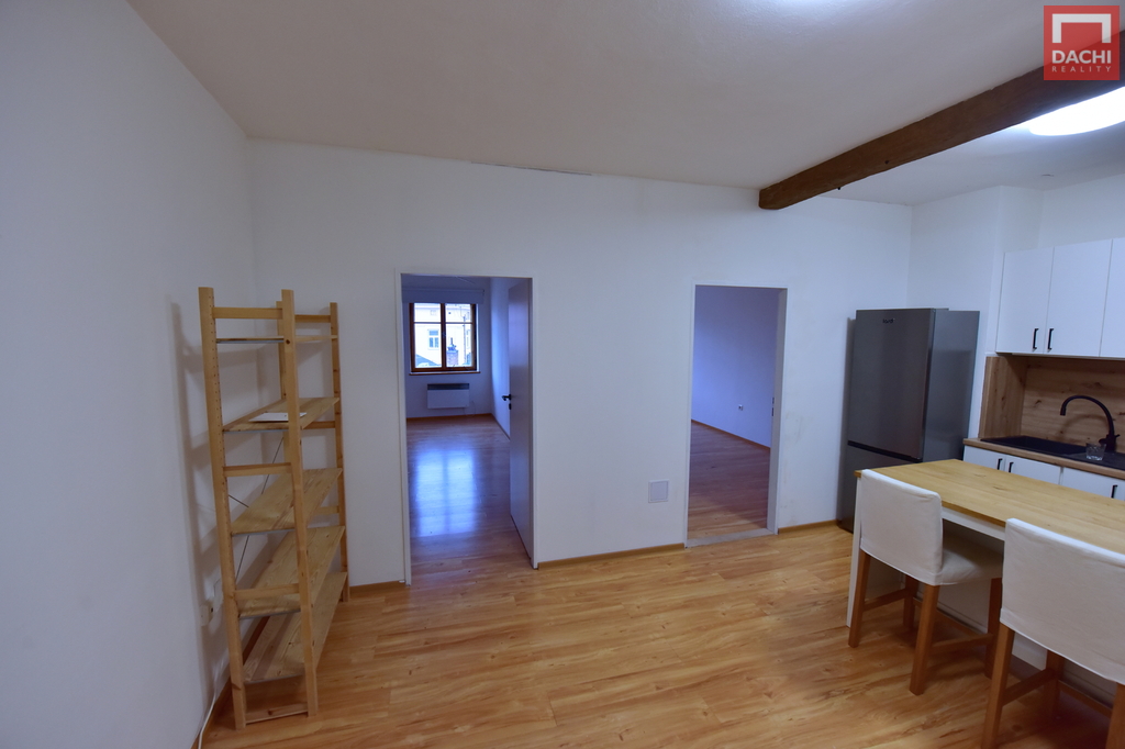 Byt disponuje třemi samostatnými pokoji, kuchyní, koupelnou se sprchovým koutem a WC a prostornou chodbou. Díky dispozici je vhodný jak pro bydlení, tak i pro spolubydlení (studenti). Kuchyňská linka je vybavena spotřebiči (varná deska, myčka, lednice), k dispozici je jídelní stůl a základní vybavení. V koupelně se nachází pračka. V bytě jsou plovoucí podlahy, vytápění řešeno elektrickými přímotopy, k dispozici je také klimatizace. Cena 30.000,-Kč měsíčně včetně energií, případně 10.000,-Kč měsíčně včetně energií za pokoj. Velkou výhodou je výborná lokalita v samotném centru města s kompletní občanskou vybaveností v docházkové vzdálenosti. K dispozici ihned. V případě zájmu o prohlídku mne neváhejte kontaktovat.