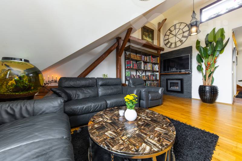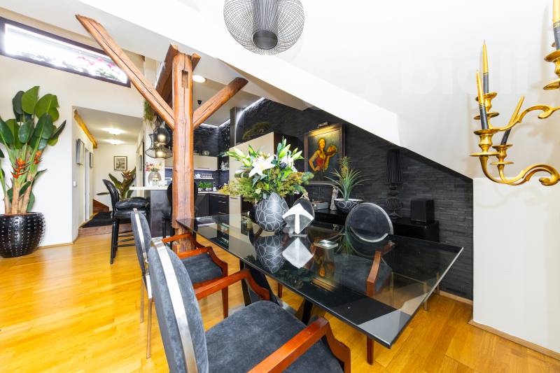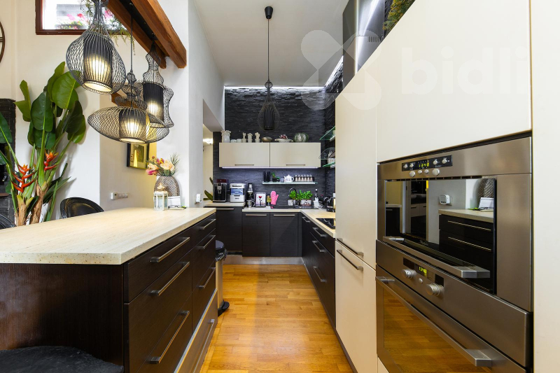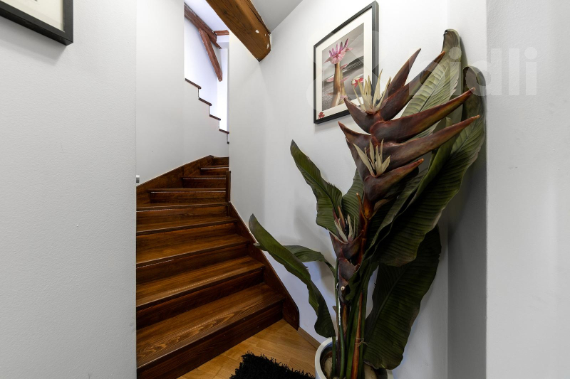 Byt nabízí nadstandardní kombinaci prostoru, komfortu a soukromí, což je v této lokalitě skutečně výjimečné. Přestože se nachází přímo v centru města, ložnice a pokoje v patře jsou orientovány do vnitrobloku, díky čemuž je byt velmi klidný a nerušený městským provozem.