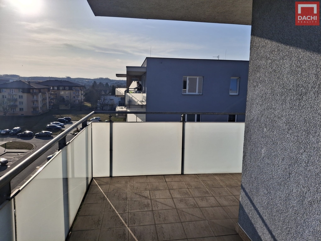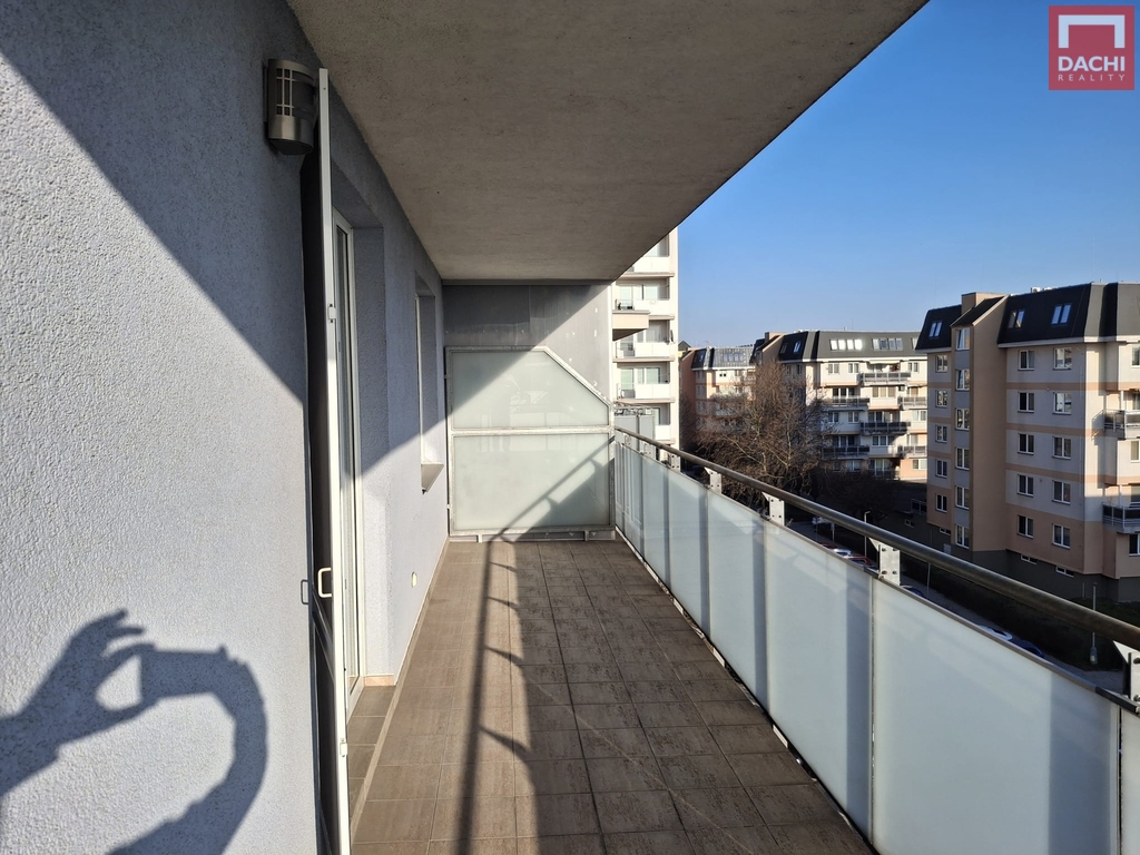 Velkou výhodou je prostorná terasa o velikosti 20 m² vhodná k relaxaci. K bytu náleží sklepní kóje a garážové stání v domě, které je již zahrnuto v ceně nájmu.