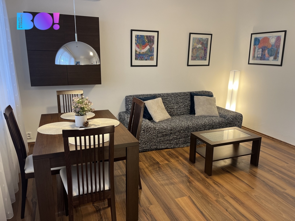 Obývací pokoj a ložnice jsou vybaveny klimatizací, což zajišťuje příjemné klima i během letních měsíců. Dva pokoje mají i venkovní žaluzie. Byt se pronajímá včetně veškerého nábytku, takže je připraven k okamžitému nastěhování bez nutnosti dalších investic, nájemce může byt vymalovat dle svého vkusu. Domácí zvířata povolena.