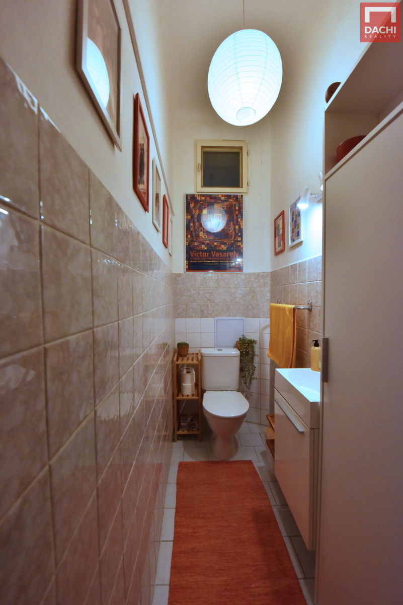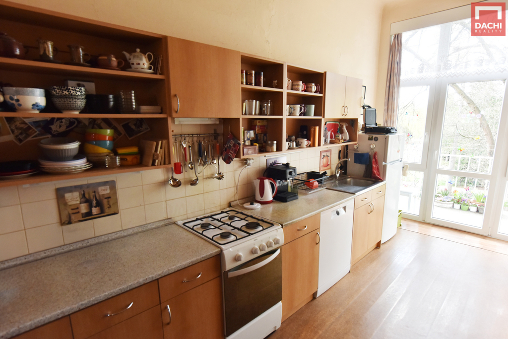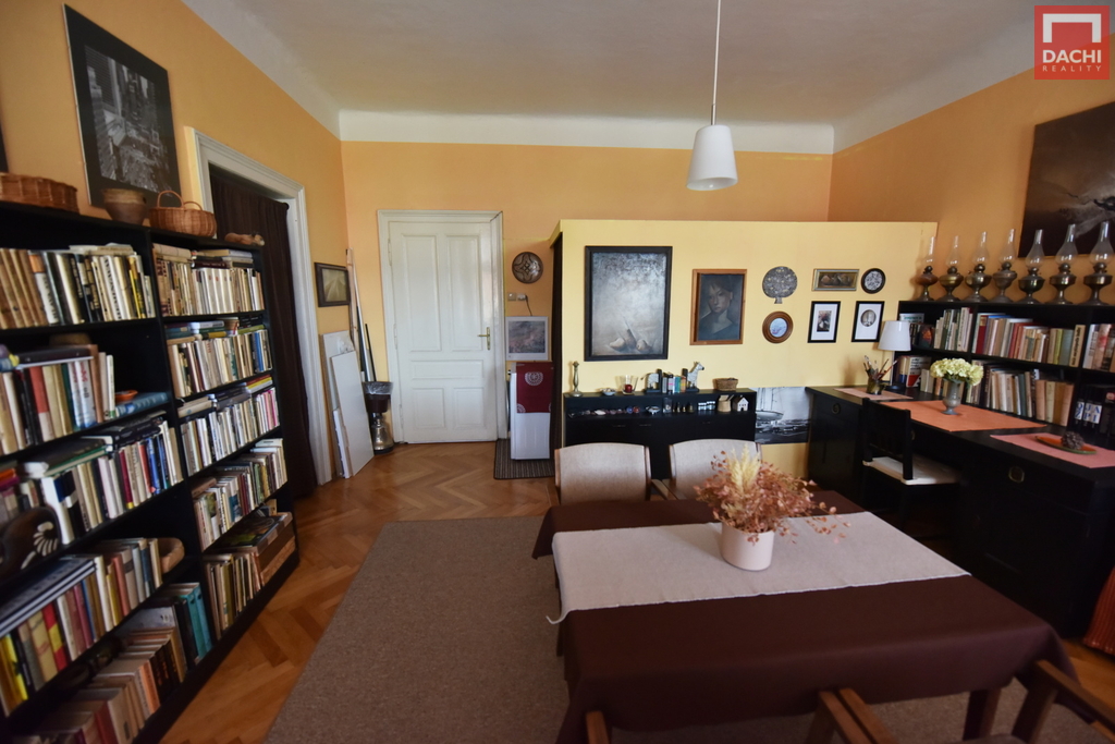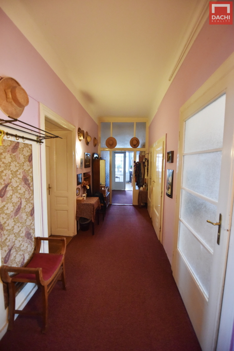 Interiér nabízí velké a světlé místnosti s dostatkem prostoru pro pohodlné bydlení. Původní dveře dodávají bytu osobitý charakter a příjemnou atmosféru.