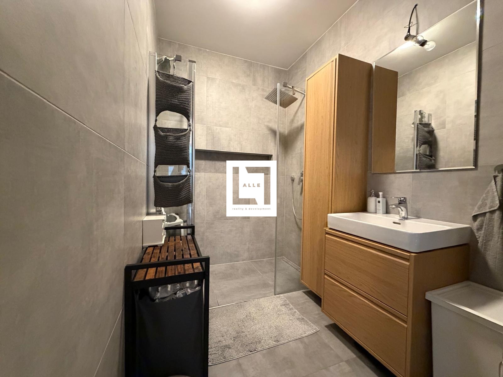 V zádveří je umístěna vestavená odkládací stěna a zrcadlová skříň. Kuchyňský kout je vybavený varnou deskou, digestoří, vestavěnou troubou, mikrovlnnou troubou a myčkou a je součástí obývacího pokoje, ze kterého je vstup na lodžii. V koupelně oceníte skříňky s úložným prostorem a sprchový kout, toaleta je samostatně. Z chodby je vchod do ložnice a do dalšího samostatného pokoje. K vyššímu standardu bydlení přispívá i podlahové vytápění. Jedná se o moderní bydlení, byt působí vzdušně, ale zároveň útulně.