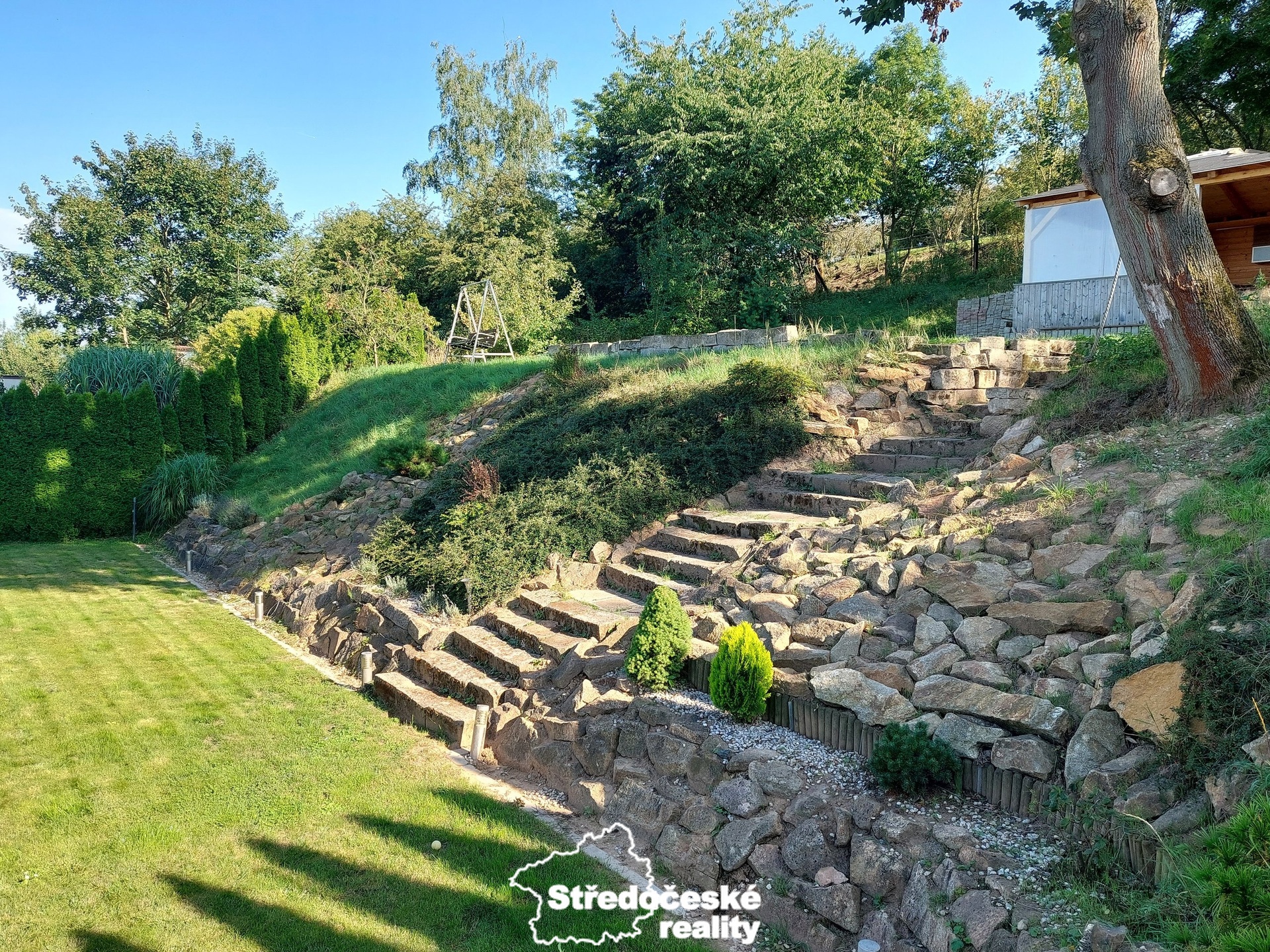Na udržovaném, oploceném pozemku o celkové výměře 1117m2 se nachází garáž pro tři vozy, sauna, altán ve výstavbě a terasa pro chvíle posezení a odpočinku (grilování, vířivka).