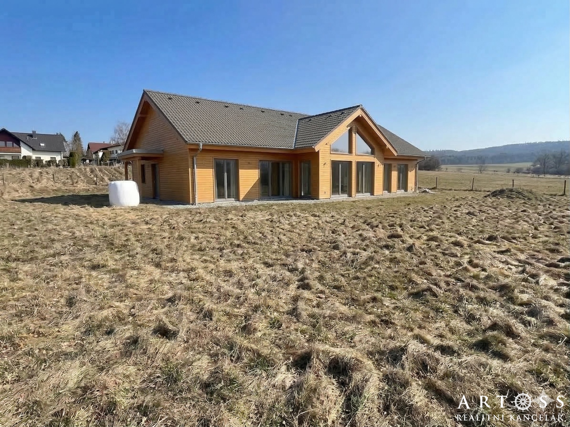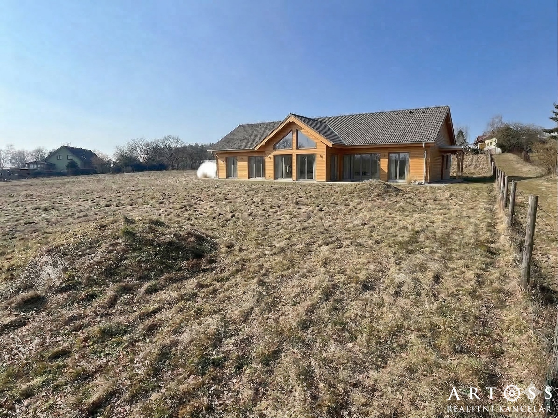 Pozemek se nachází na vyvýšeném místě, které zaručuje panoramatický výhled na okolní krajinu a lesy.