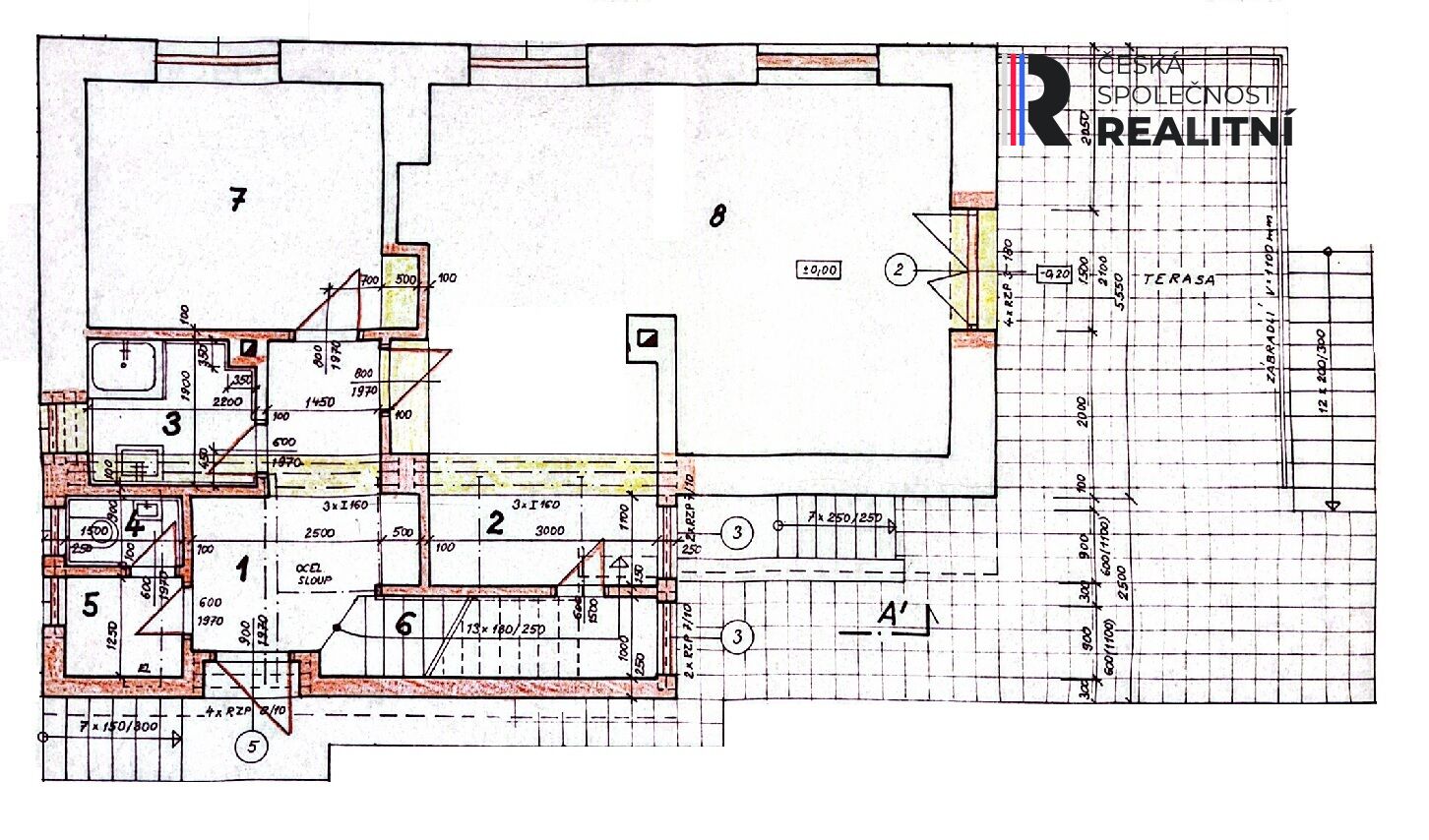 Dispozičně - 5kk, kdy v 1NP je vstupní chodba, šatna, koupelna, WC, ložnice, prostorný obývací pokoj s výstupem na terasu, jídelním a kuchyňským koutem, spižírna, dále dřevěným schodištěm do podkroví, kde jsou 3 pokoje ( stavební výkresy rekonstrukce z r. 1988 jsou řádně dochovány a pro náhled orientačně 1NP i podkroví v prezentaci ).