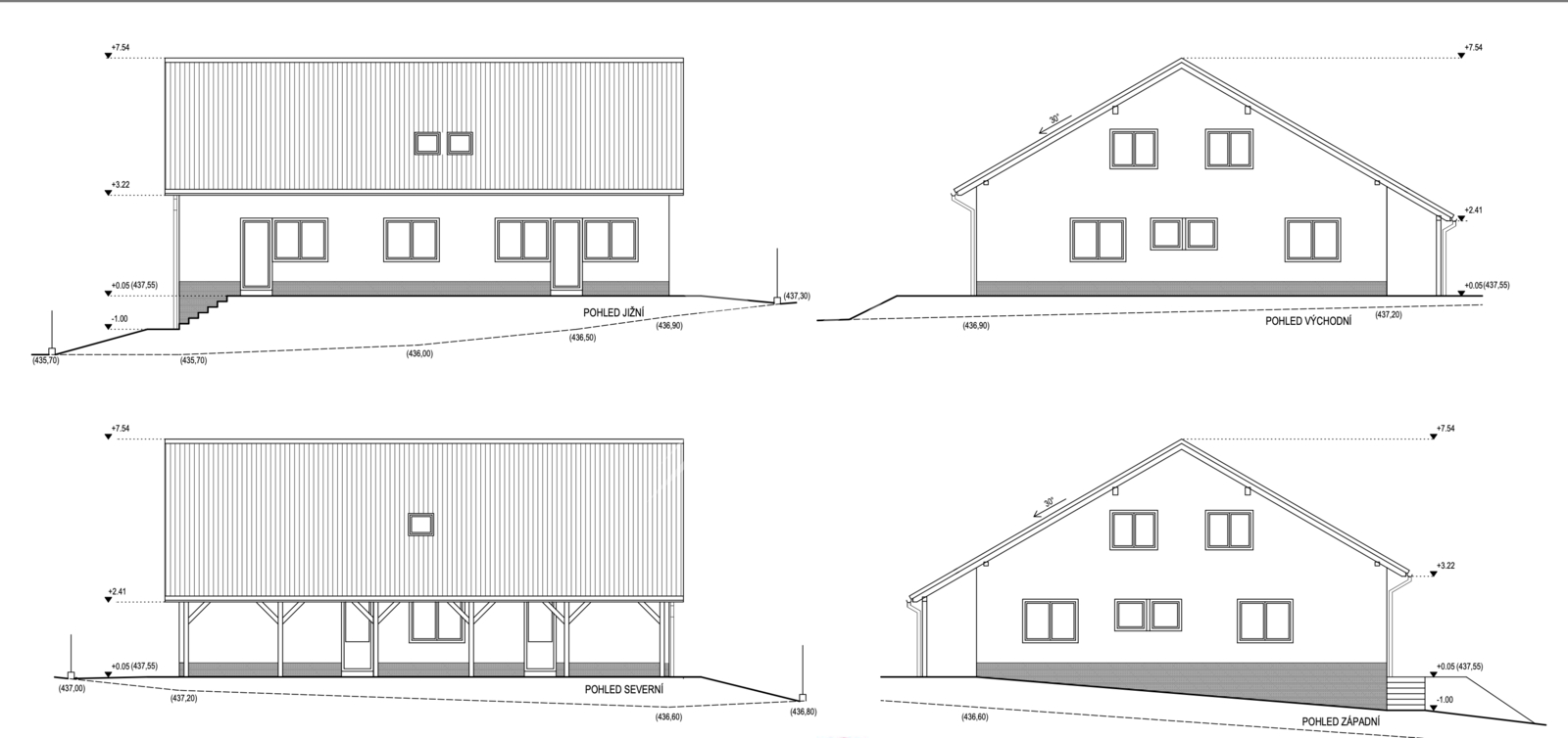 Součástí je již vydané stavební povolení na dvougenerační dům projekt je součástí nabídky – lze tedy začít stavět okamžitě.