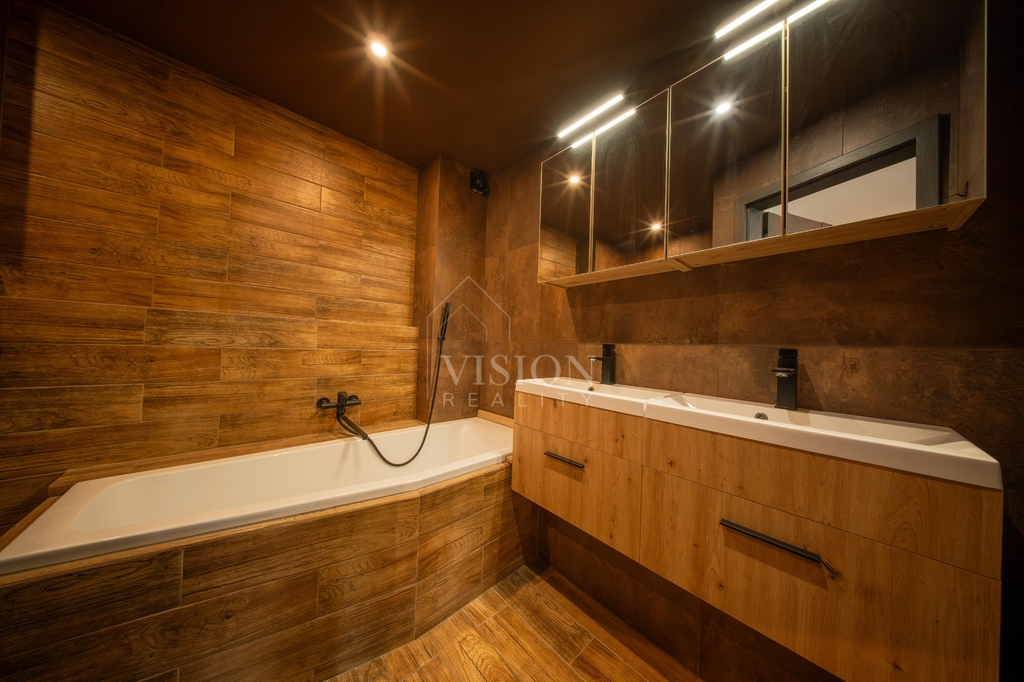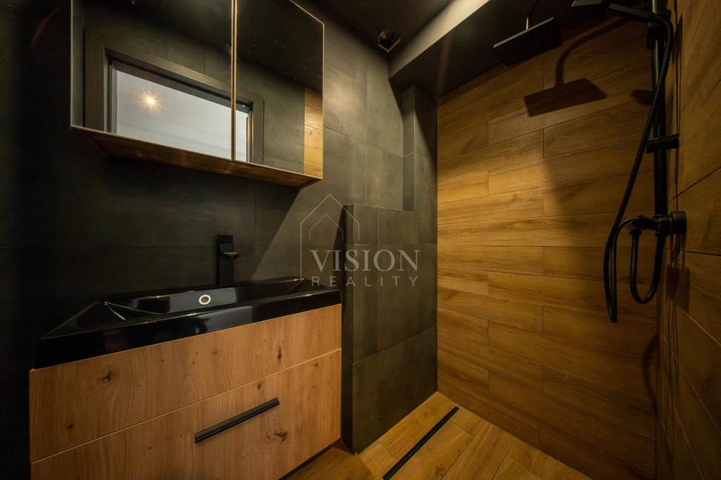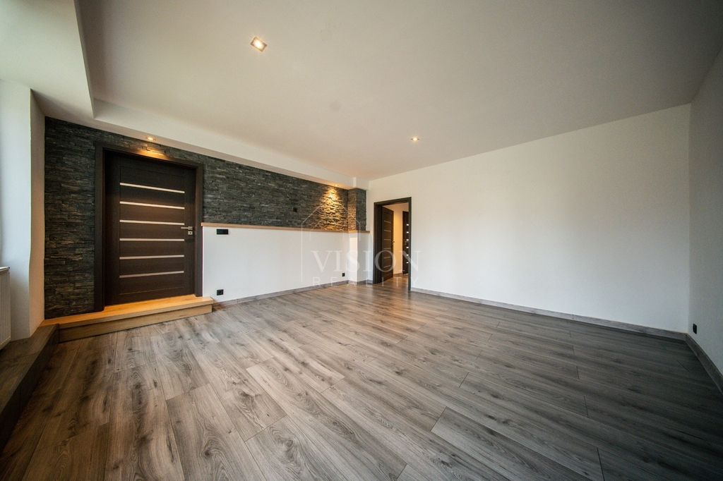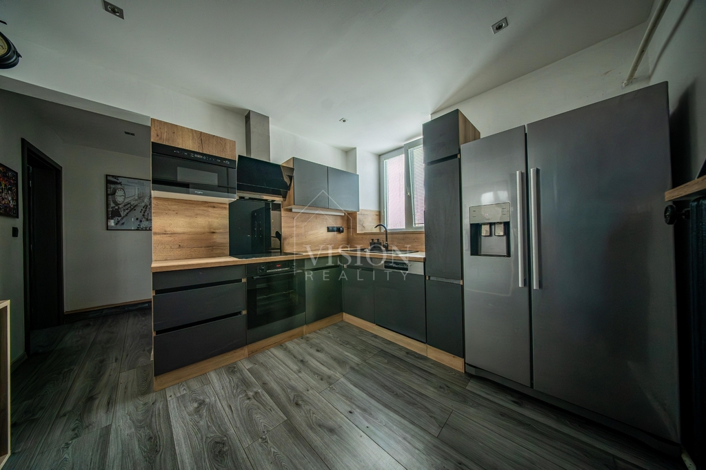 V přízemí se nachází byt 4+1 o podlahové ploše 110 m², který nabízí opravdu velkorysý prostor – obývací pokoj, dvě ložnice, kuchyni, šatnu, technickou místnost a také dvě koupelny a dvě toalety. ( současně využíváno jako dvě bytové jednotky, každá s vlastním vstupem). Vytápění je řešeno ústředním podlahovým topením, které zajišťuje příjemný komfort bydlení.