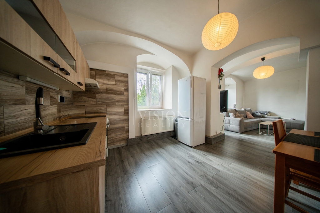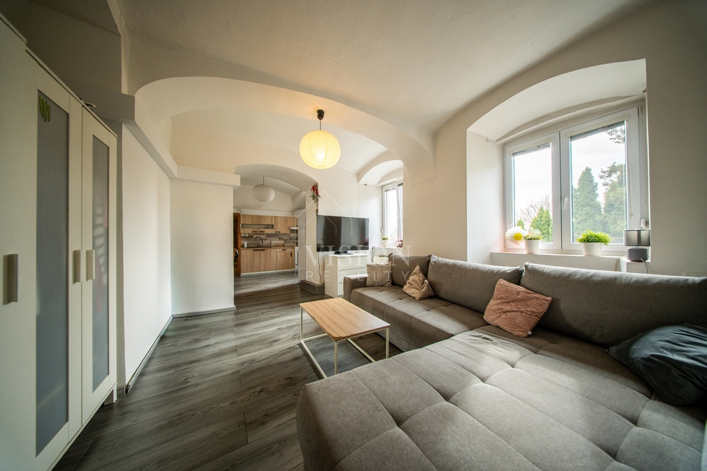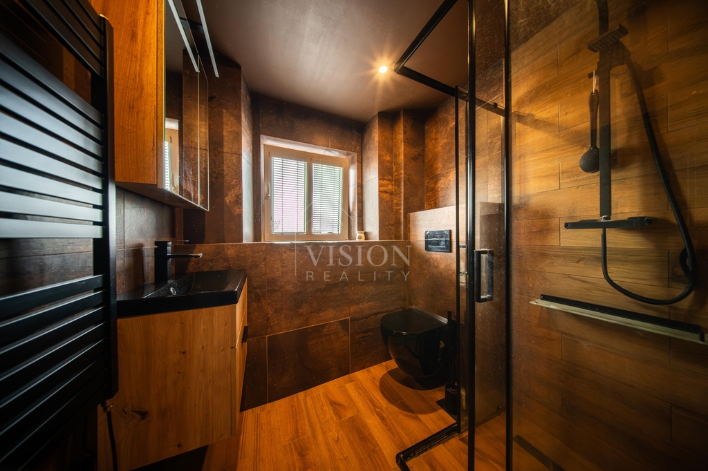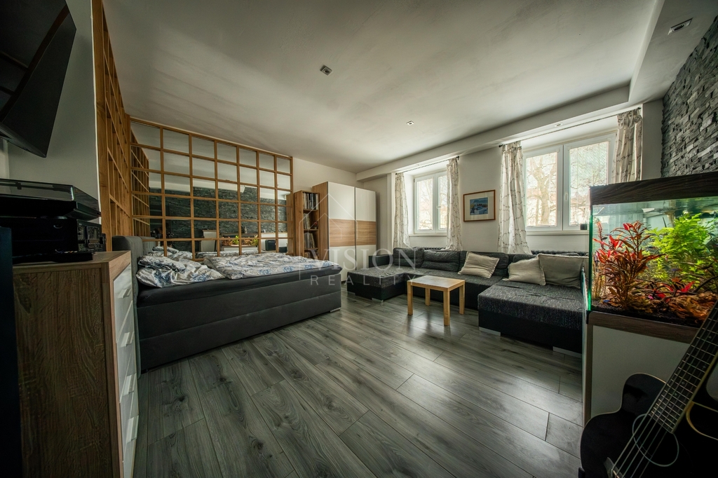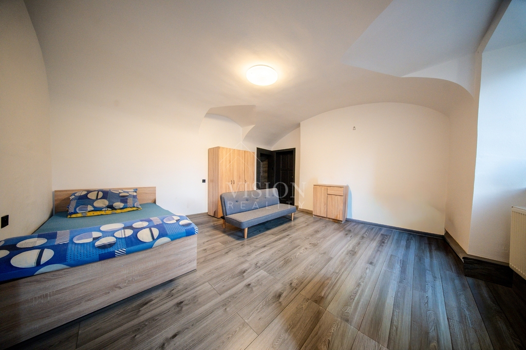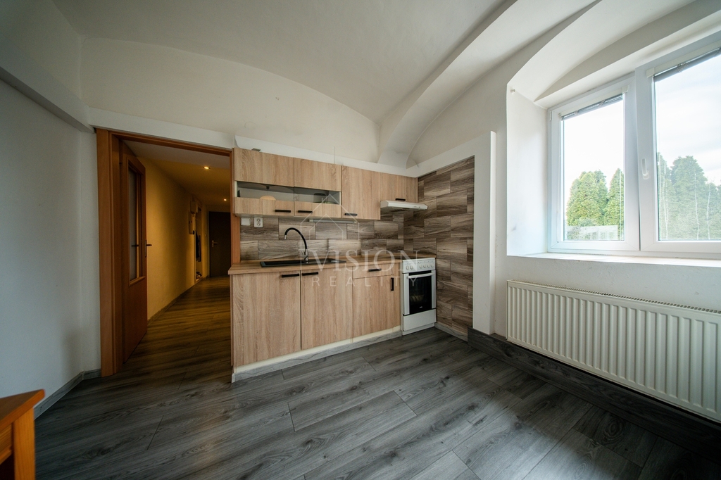 Součástí domu je také byt 1+1 o ploše 40 m², který nabízí pokoj, kuchyň a koupelnu s WC – ideální například pro dlouhodobý pronájem.