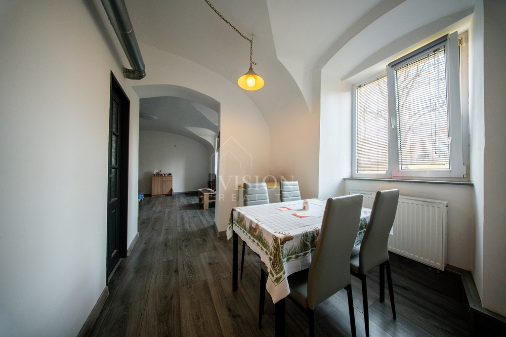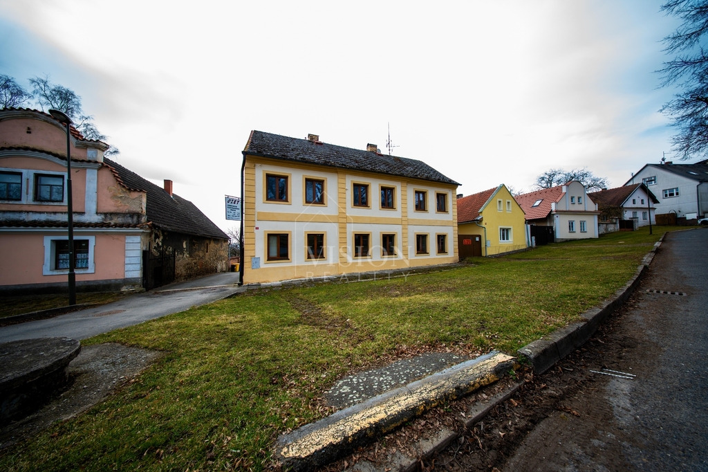 Dům stojí přímo na náměstí, což mu dává skvělou dostupnost i atraktivní adresu. Uvnitř najdete tři samostatné bytové jednotky.