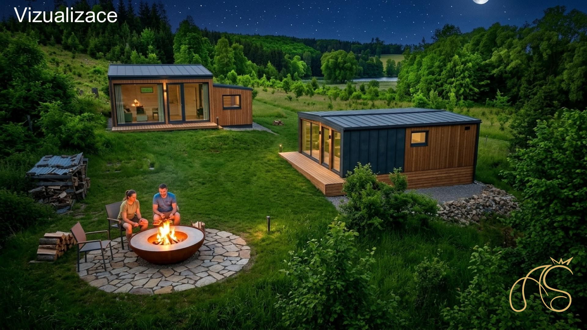 Na jednom ze stavebních pozemků se nachází nově upravená maringotka s terasou. V maringotce je ložnice se dvěma lůžky, obývací prostor s kuchyňkou a koupelnou se sprchovým koutem a toaletou. Vytápění zajišťuje tepelné čepadlo.