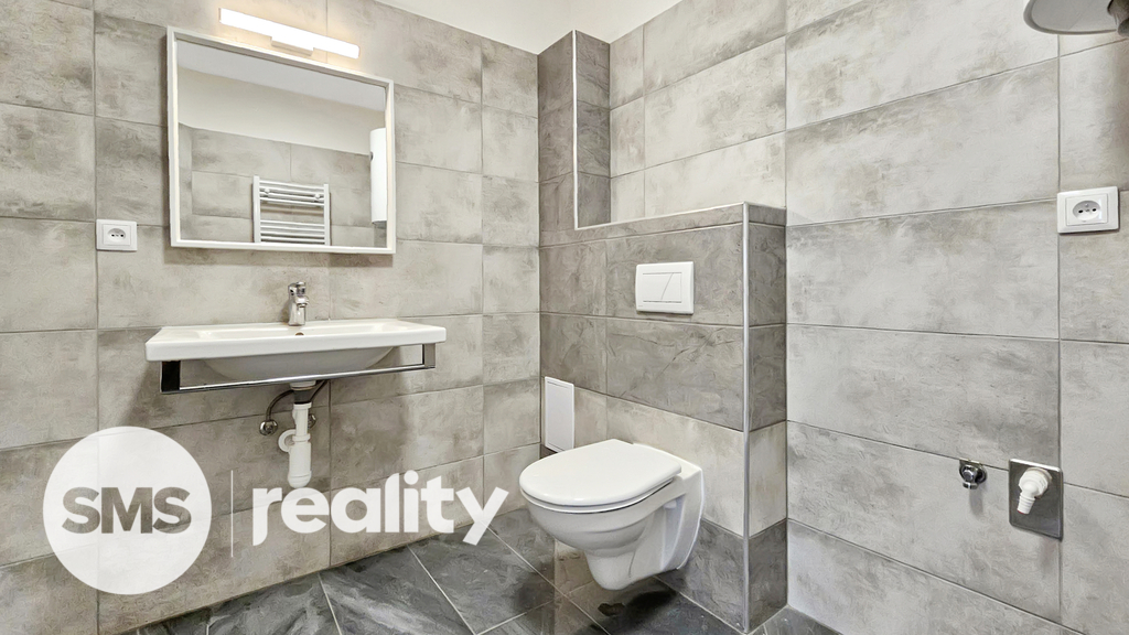 Kuchyň je vybavena moderní kuchyňskou linkou s elektrickou troubou, indukční varnou deskou, digestoří a granitovým dřezem. Součástí je také příprava na myčku. V průběhu týdne bude dřez doplněn o vodovodní baterií. Koupelna nabízí prostorný sprchový kout, toaletu, umyvadlo se zrcadlem. Samozřejmostí je příprava na připojení pračky. Ohřev vody zajišťuje elektrický bojler, vytápění je řešeno centrálním kotlem pro celé patro.