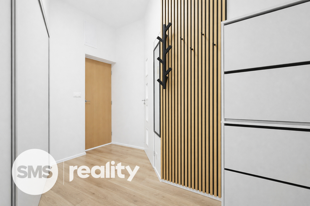 V předsíni se nachází praktický úložný prostor atypického tvaru o velikosti _ m², dále předsíňová stěna společně s botníkem a zrcadlem. V celém bytě jsou položeny kvalitní vinylové podlahy a nainstalovány energeticky úsporné spotřebiče a LED osvětlení, které přispívají k nízkým provozním nákladům. V případě zájmu je navíc možnost pronájem jednoho parkovacího místa ve dvoře domu.