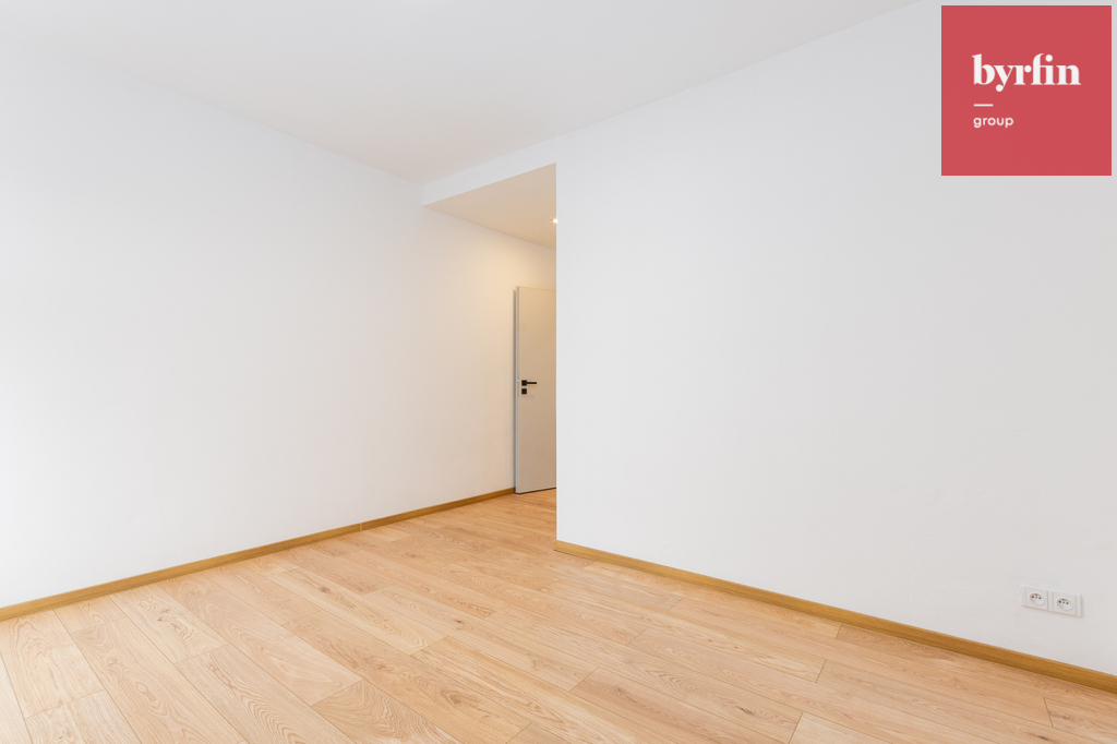 Ložnice je vzdušná a příjemná, ideální pro klidný spánek. Celý byt je bezprahový, což ocení jak pohodlí při pohybu, tak i váš robotický vysavač.