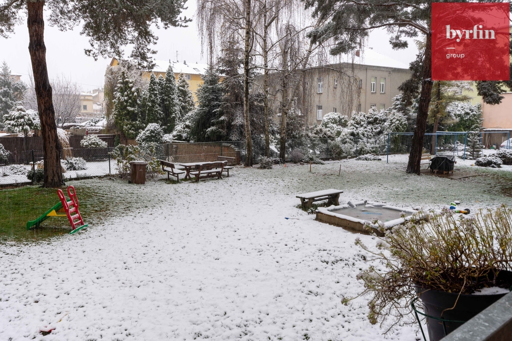 Velkým benefitem je balkón o výměře cca 9 m², orientovaný do klidného vnitrobloku. Součástí prodeje je rovněž podíl na pozemku za domem.