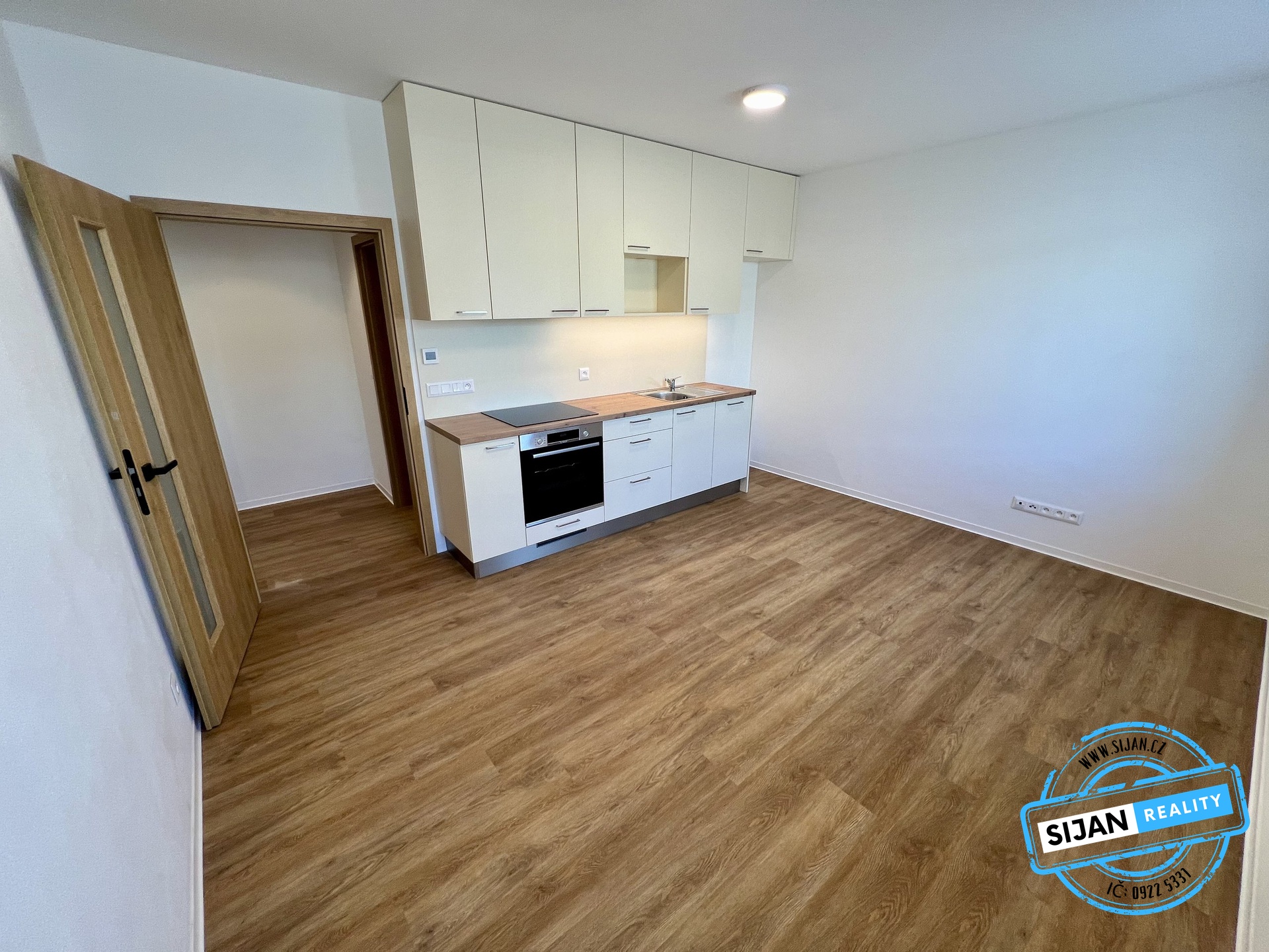 Byt je po rekonstrukci (podlahové vytápění, elektroinstalace, podlahy, kuchyně se spotřebiči, okna, omítky, led osvětlení, žaluzie, dveře).