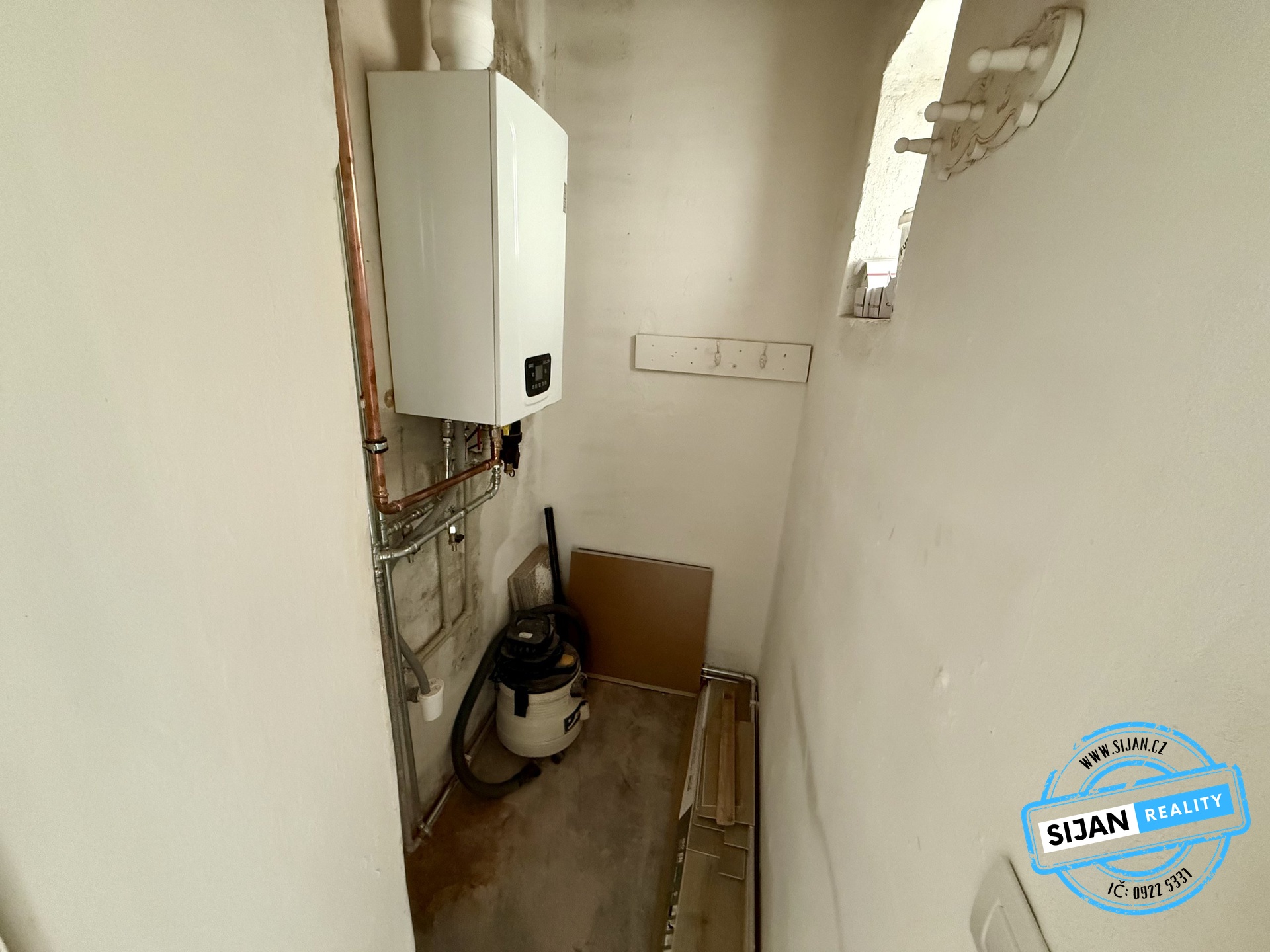 Vytápění bytu je zajištěno plynovým kotlem (radiátory i ohřev vody).