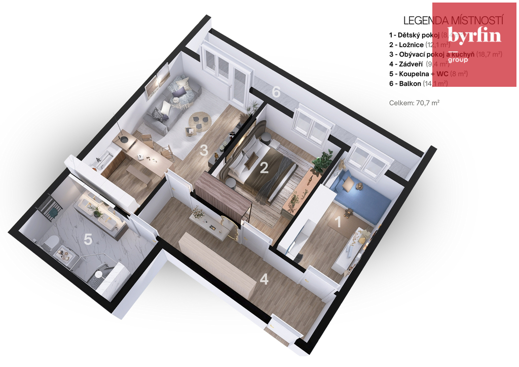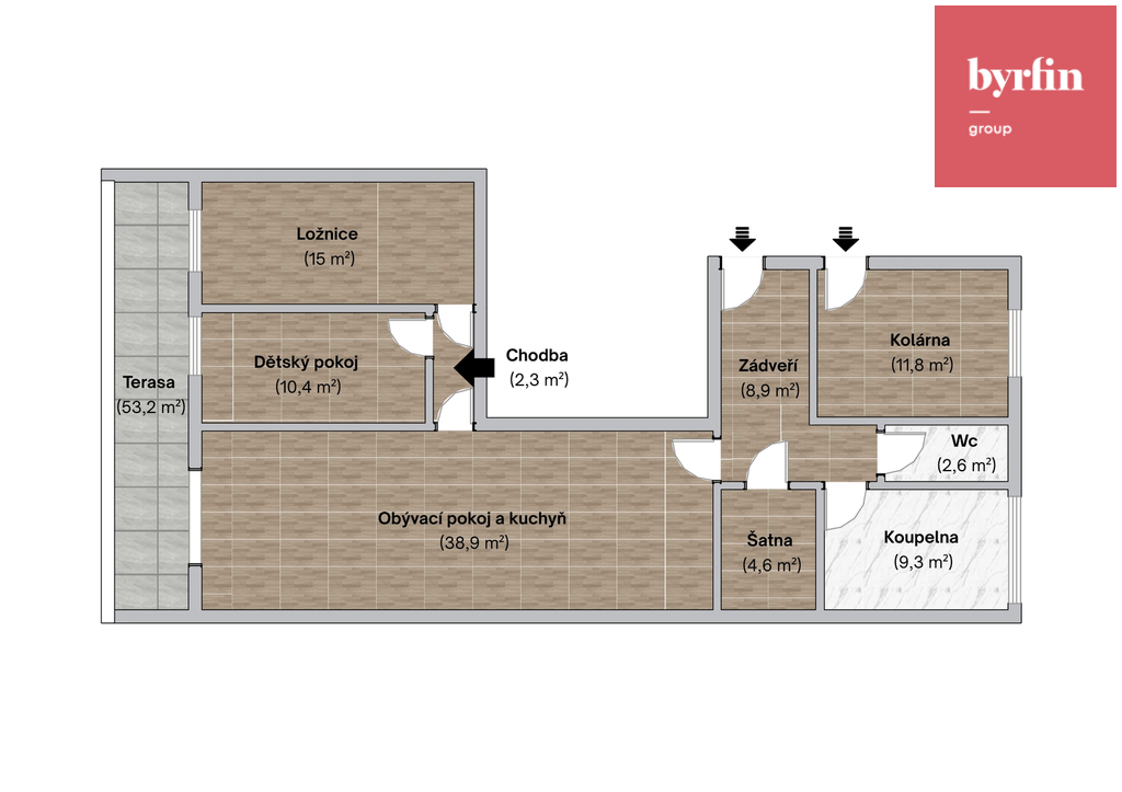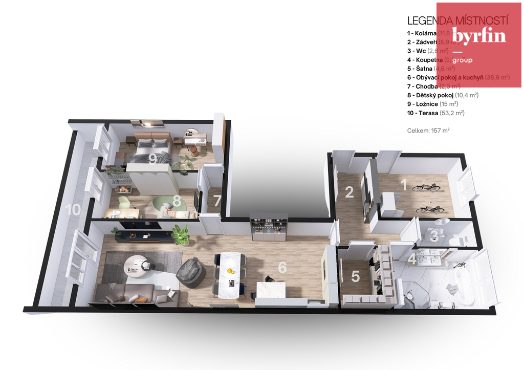 – Dispozice: 8× byt 3+kk, 1× byt 2+kk