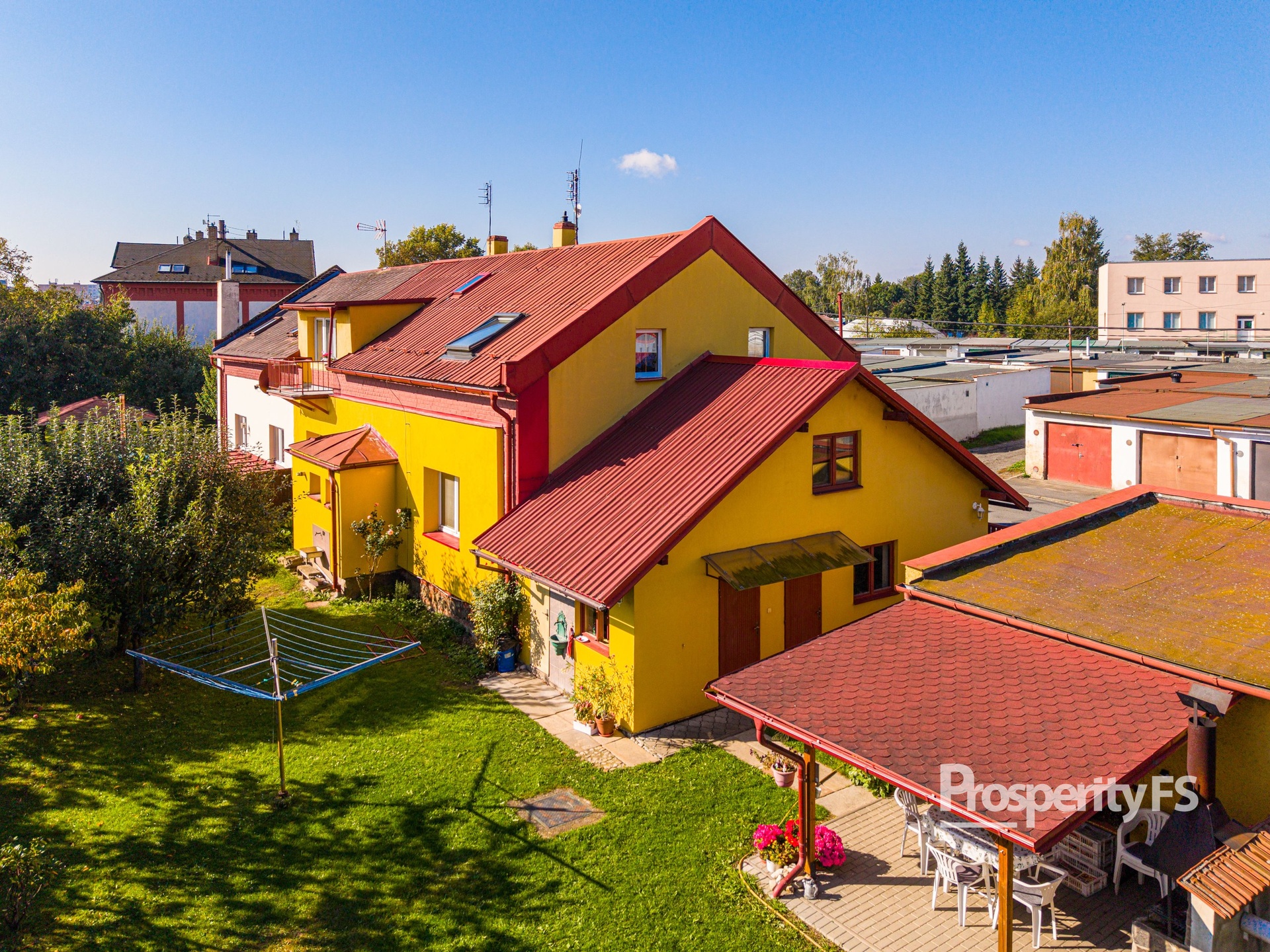 Pak vás jistě zaujme tento dvoupodlažní rodinný dvojdům se třemi bytovými jednotkami, dvěma garážemi a krásnou, velkou zahradou.