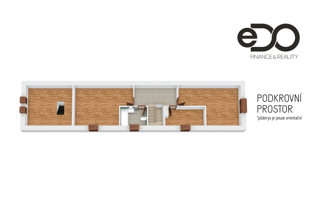 V podkroví byly v minulosti vybudovány další místnosti, které jsou dnes fakticky využívány, avšak jejich provedení neproběhlo na základě projektu ani stavebního povolení. Z tohoto důvodu nejsou započítány do obytné plochy a nejsou předmětem oficiální kolaudace. Zároveň nelze v tuto chvíli garantovat, zda by bylo možné tyto prostory dodatečně zkolaudovat, a to zejména s ohledem na parametry pochozí výšky stropu. Podkroví je proto v nabídce prezentováno spíše jako doprovodný užitný prostor, nikoliv jako plnohodnotná obytná část.