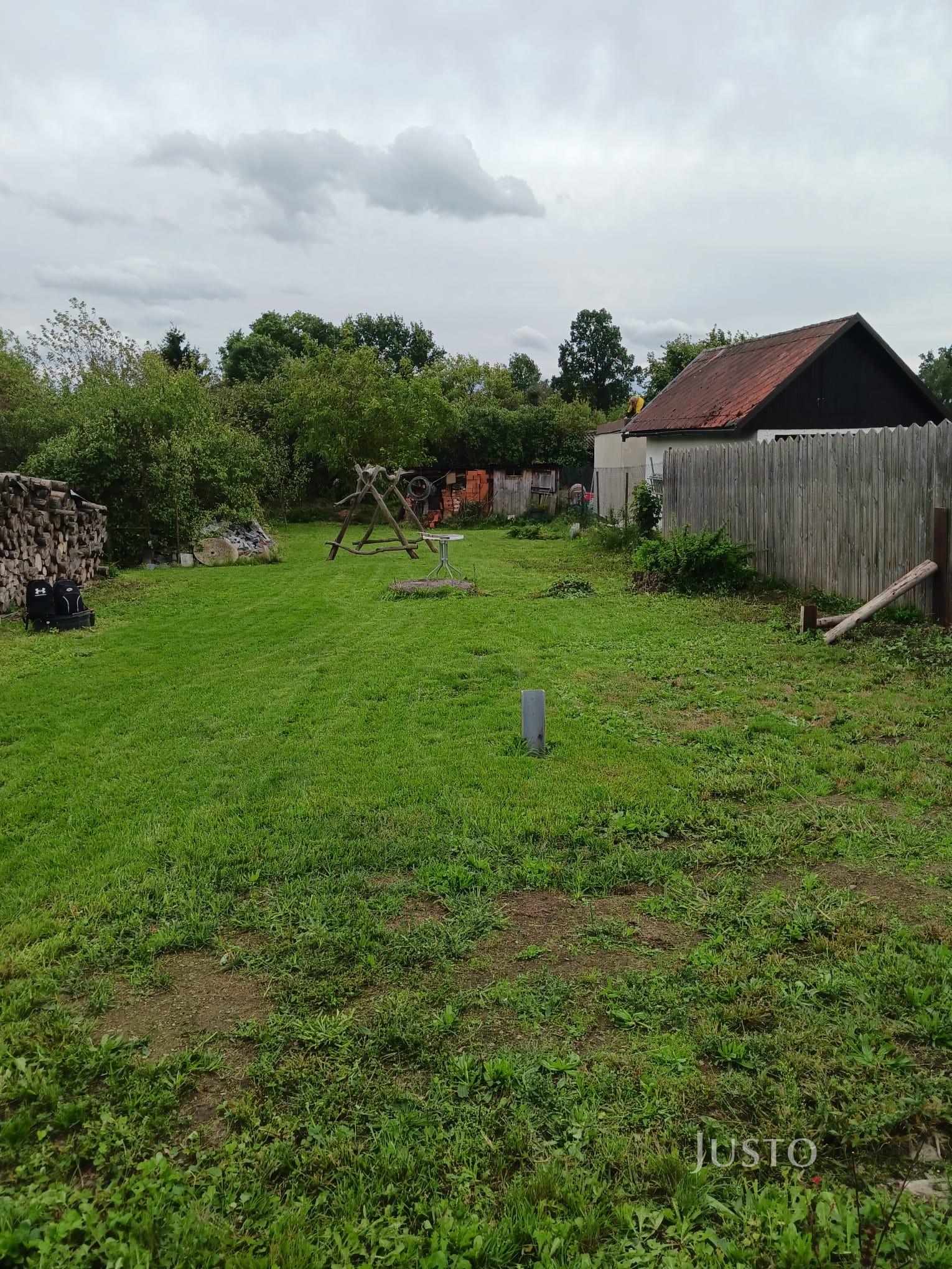 Na pozemku se nachází menší zahradní domek, který je předmětem samostatného řešení se sousedními vlastníky.