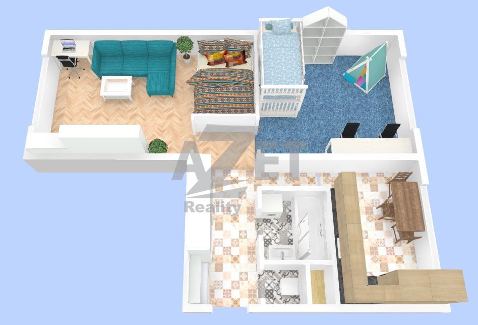Umístění bytu je v 7. patře (8. NP), nespornou výhodou tohoto patra je klid, větší soukromí a výhled z oken. Jednotlivé místnosti jsou neprůchozí a díky orientaci na světové strany velmi slunné. V obývacím pokoj je prostorný kout jenž může sloužit ke spaní, jako pracovna nebo šatna. Dětský pokoj svou velikostí vhodný i pro více než jedno dítě. Kuchyňská linka sice původní přesto zachovalá a ještě poslouží. Bytové jádro v roce 2024 prošlo kompletní rekonstrukcí, je zděné z Ytongu 100mm, plyn je již veden v mědi a byla vyměněna i kanalizace a vodovod a to vše v celém bytovém domě. Do bytu je již navedl nový přívodní kabel a jsou v bytě nové jističe (hlavní jistič je 25A). Koupelna byť menší i tak se podařilo umístit vanu se zástěnou a pračka. WC je samostatné. Byt lze samozřejmě upravit dle vlastních představ a vyladit si jej k vlastní dokonalosti.