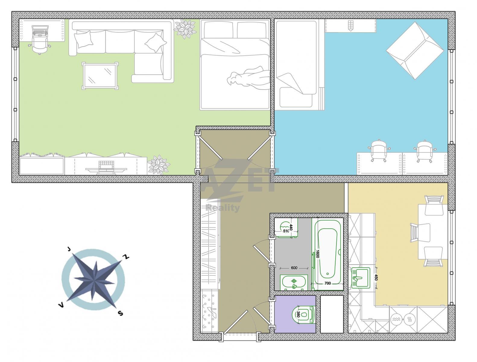 Celková plocha bytu - 49 m2