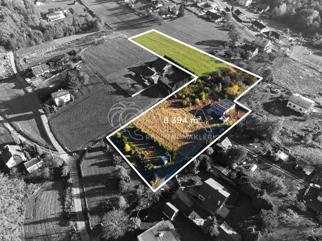 Rozloha pozemku je ohromných 8394 m², přičemž polovina se nachází v zastavitelném území. To už si o něco říká, co myslíte?