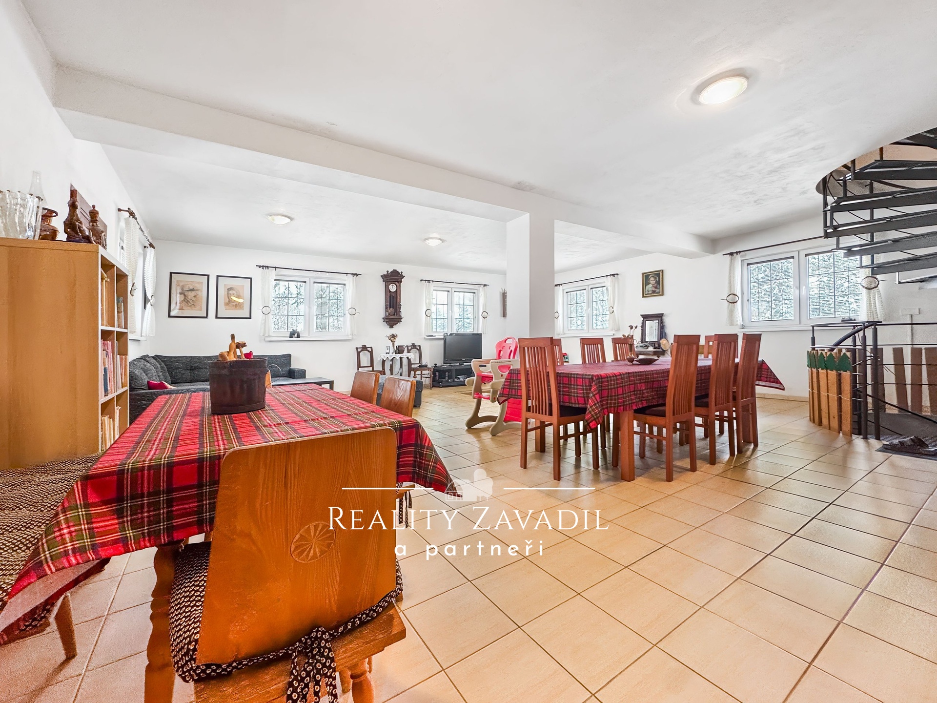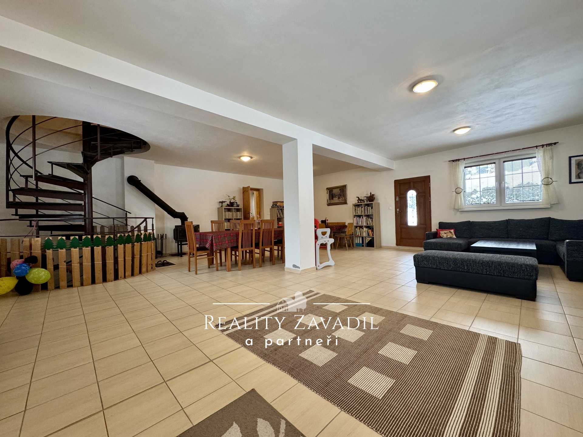 Dům disponuje zastavěnou plochou přibližně 200 m² a užitnou plochou kolem 320 m², vše na pozemku o rozloze 1 244 m². V přízemí se nachází prostorná kuchyně se samostatnou jídelnou, velký obývací pokoj s krbem, který vytváří útulnou atmosféru, pracovna, koupelna a vstupní chodba. Dominantou přízemí je společenská místnost o velikosti 72 m², která je ideální pro pořádání oslav, firemních akcí nebo setkání s hosty.