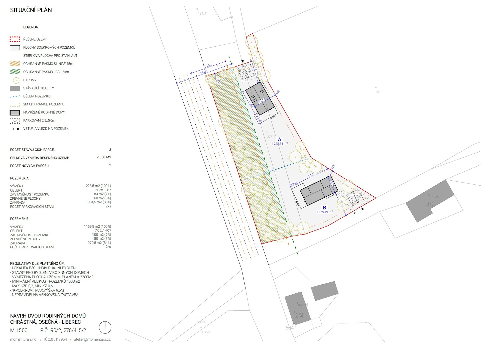 - intenzita využití pozemku - koeficient zeleně min. KZ = 0,60