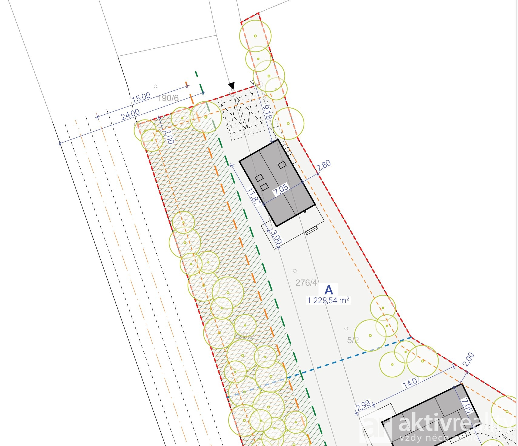 přikoupit pozemek A (1.228) m² a mít větší zahradu, případně druhý pozemek pro dalšího rodinného
