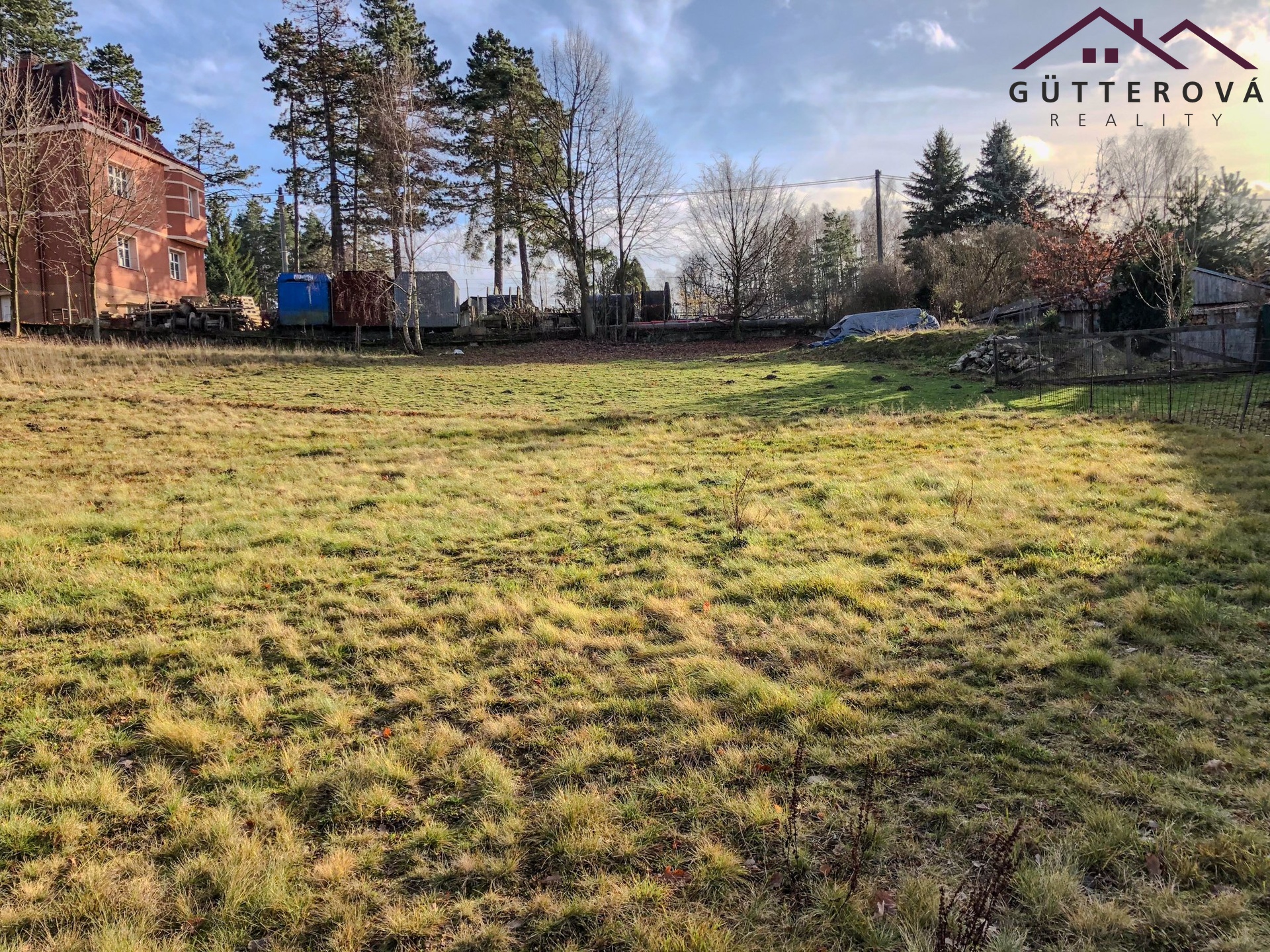 Pozemek se nachází na okraji obce u lesa a má téměř čtvercový tvar.