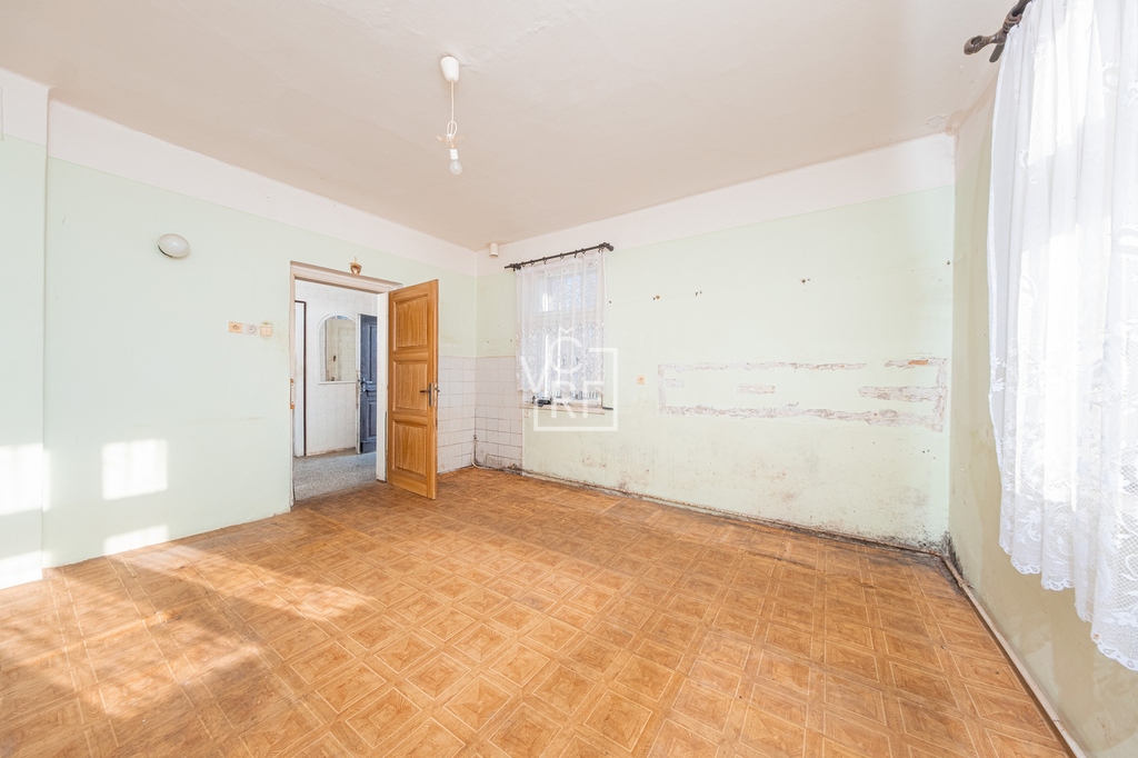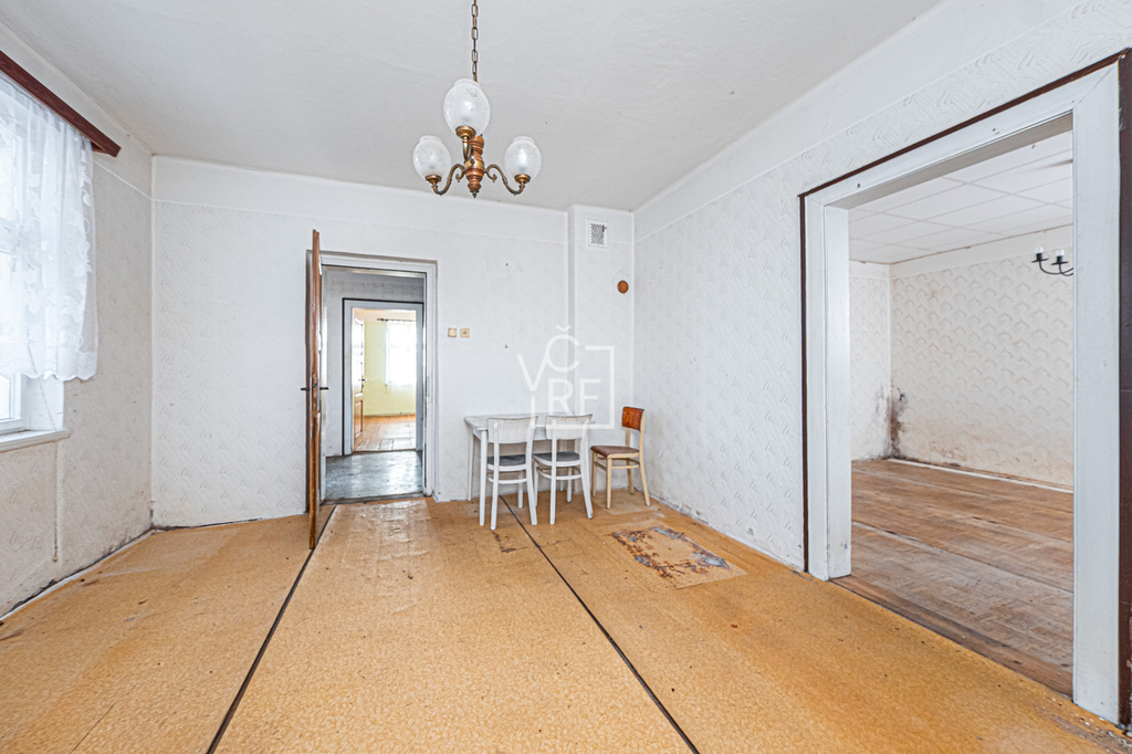 V přízemí rodinného domu se nachází vstupní chodba a 4 pokoje, schodiště (pod schody sklepní prostor). V podkroví se nachází prostor pro půdní vestavbu. Objekt nemá sociální zařízení. V RD se dají vybudovat dvě samostatné bytové jednotky nebo více pokojů (možnost až 6+1, 2x WC koupelna). Celková budoucí užitná plocha cca 200m2.