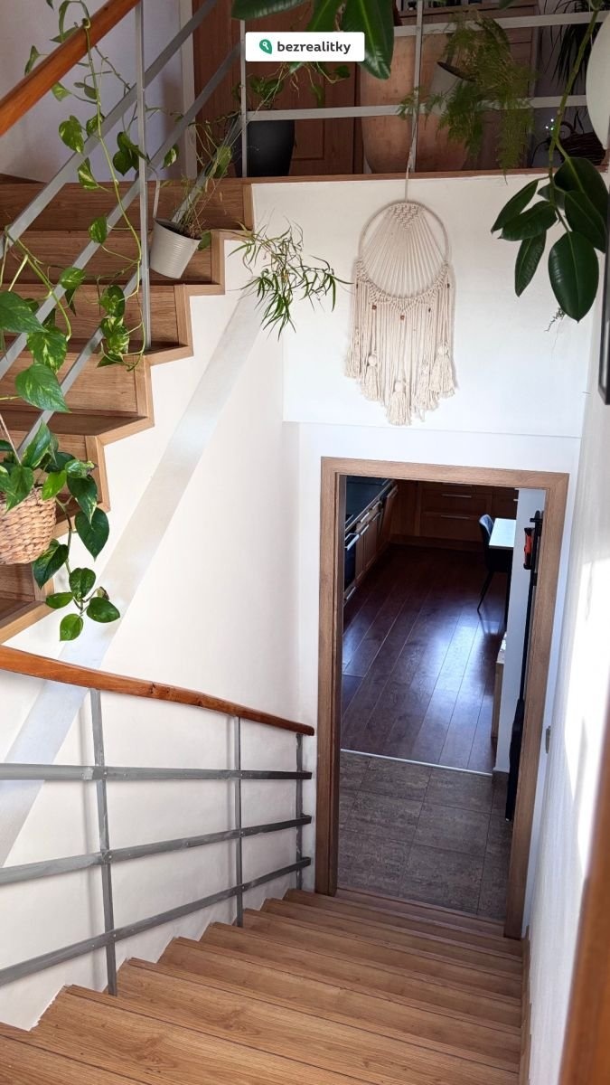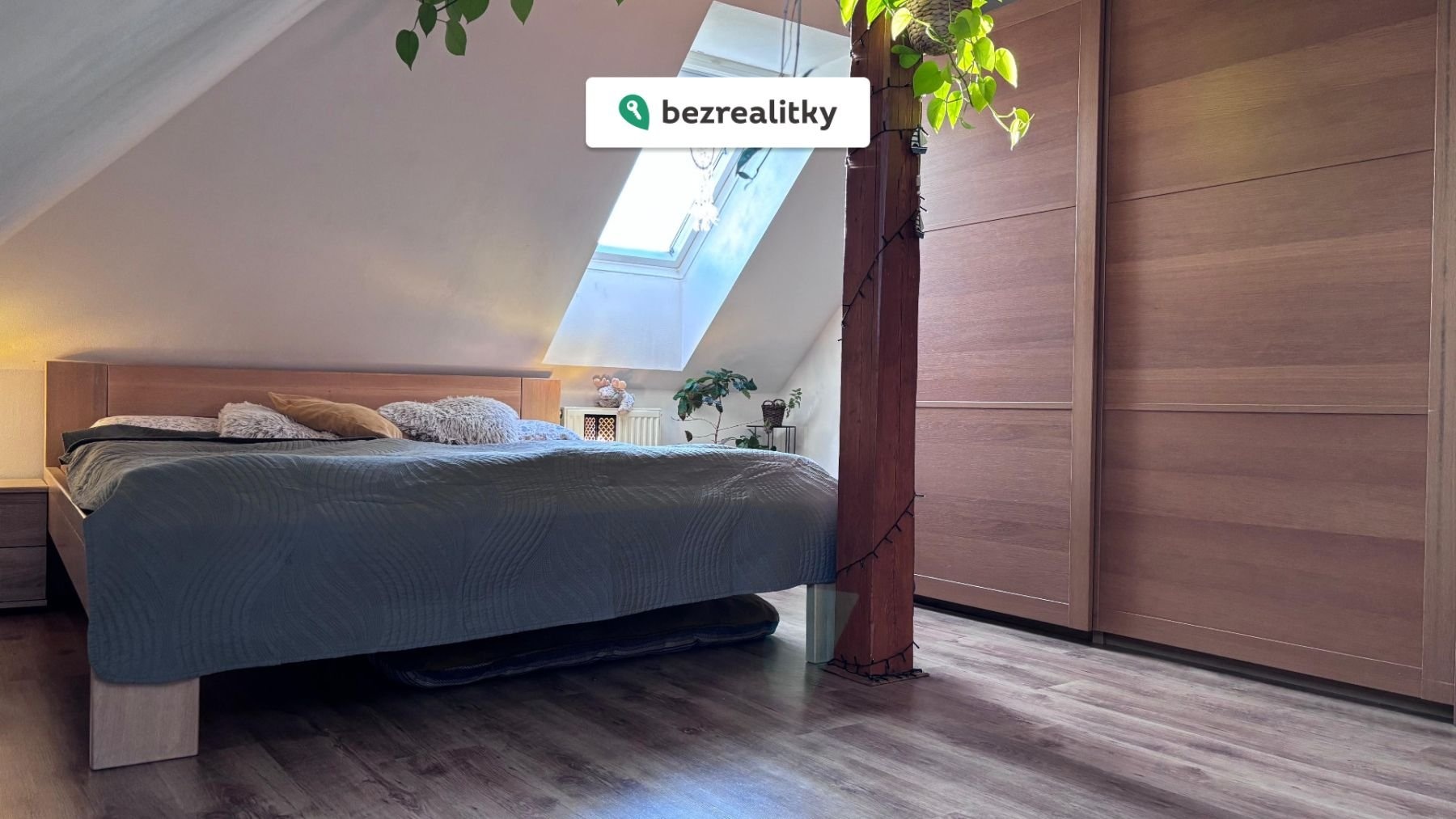 Druhá podkrovní bytová jednotka se sestává ze samostatné toalety, koupelny se sprchovým koutem, dvěmi ložnicemi a obytným pokojem, kde jsou kompletně připraveny rozvody vody, odpadů a elektřiny na další kuchyň a celkový dojem prostoru podtrhují dřevěné trámy navozující pocit útulného domova.