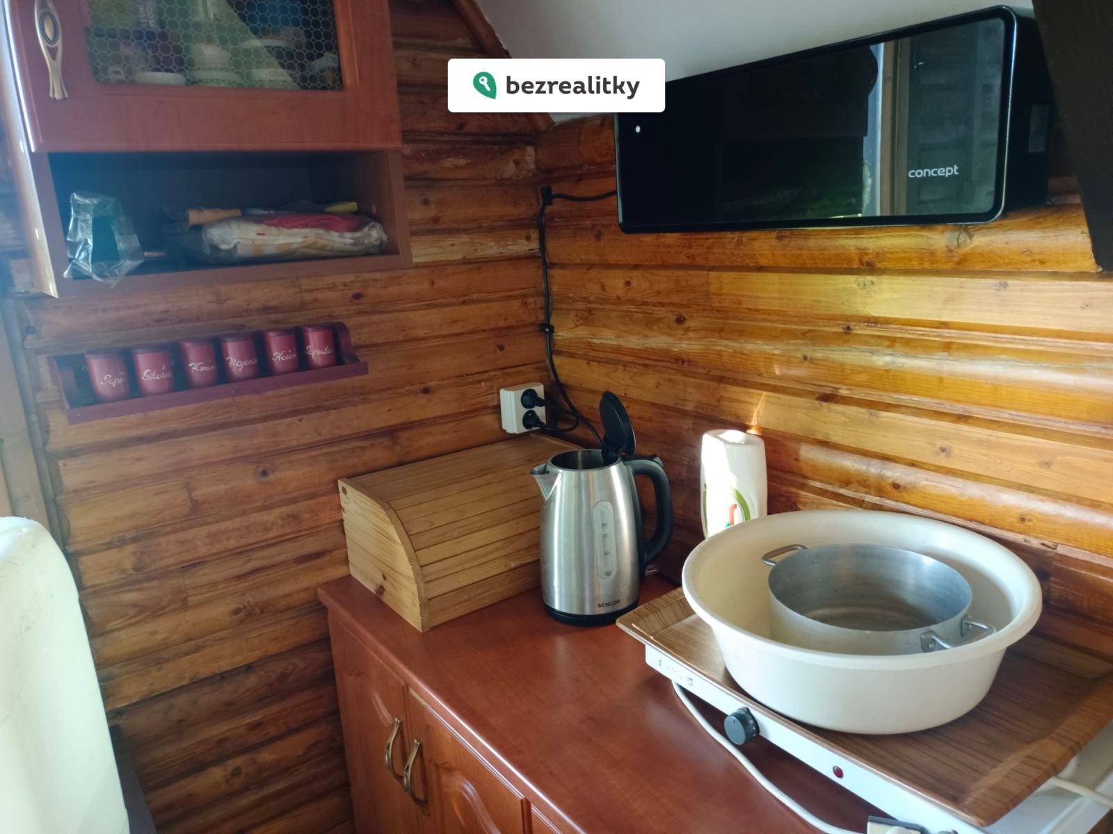 Chata má udělaný kompletní rozvod vody vevnitř kuchyně, koupelna i garáž, samozřejmě včetně odpadů, bojleru – vše nové. Zbývá vodu dopojit do chaty – nachystaná přípojka od souseda z jeho vrtu a vybudovat jímku na odpad, již schválené stanovisko s umístěním jímky od sousedů.