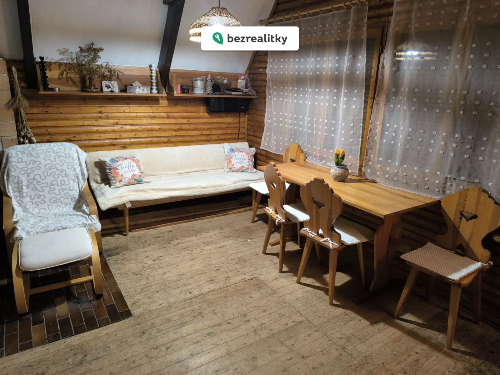 Vybavení chaty je možno ponechat, v chatě je vybavení z masivu včetně stolů a židlí vyráběných přímo truhlářem. 2X LCD TV včetně domácího kina.
