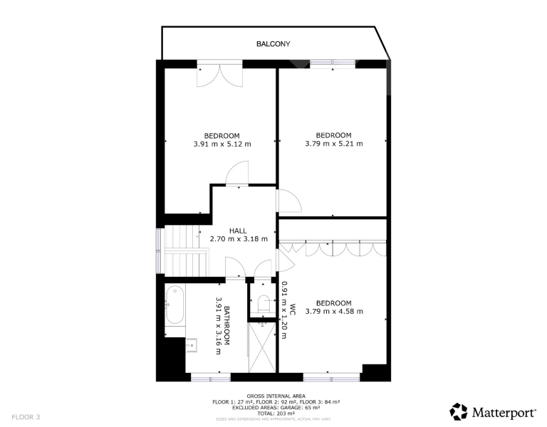 • tři samostatné pokoje (20 m², 20 m², 19 m²)
