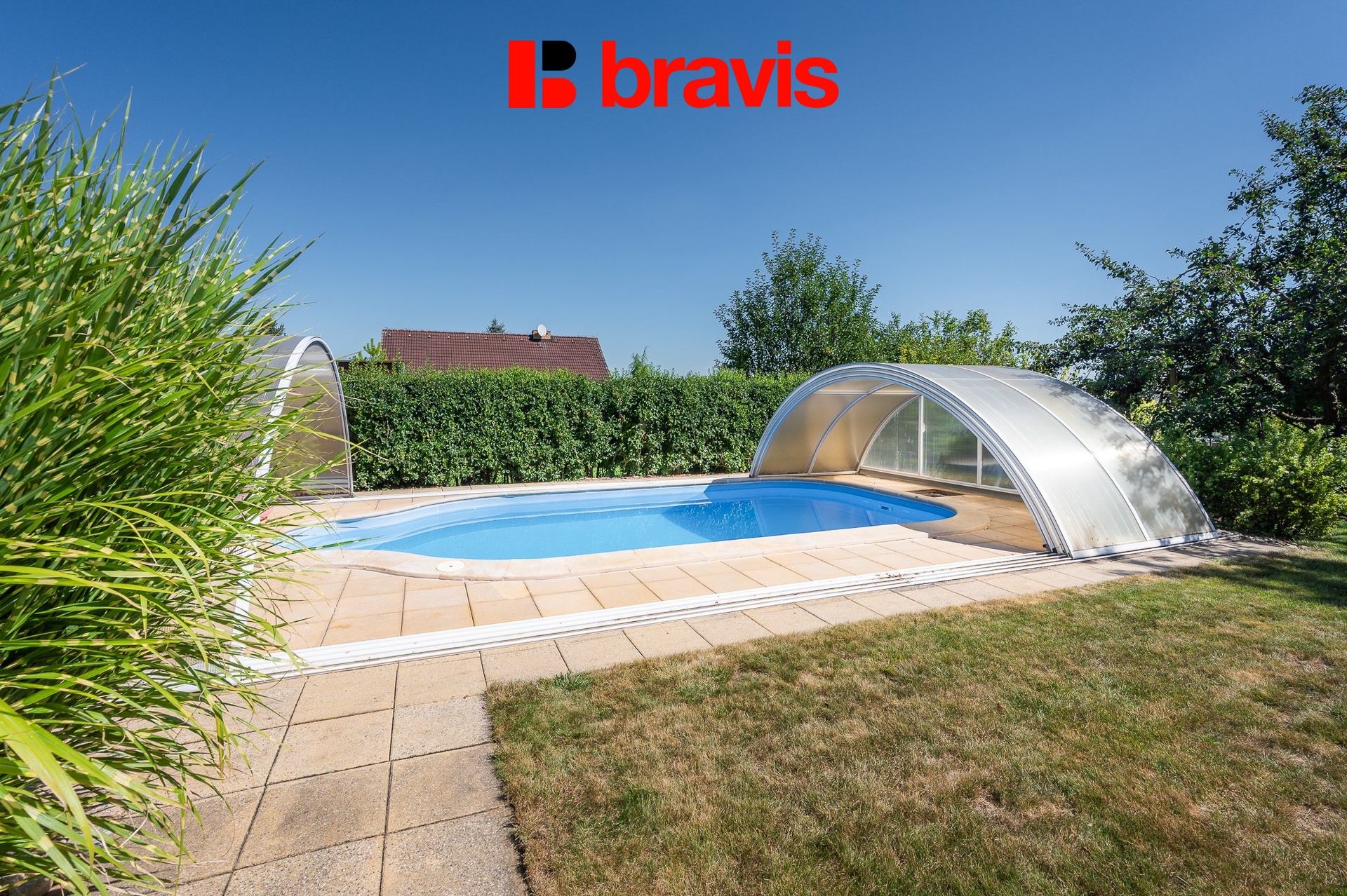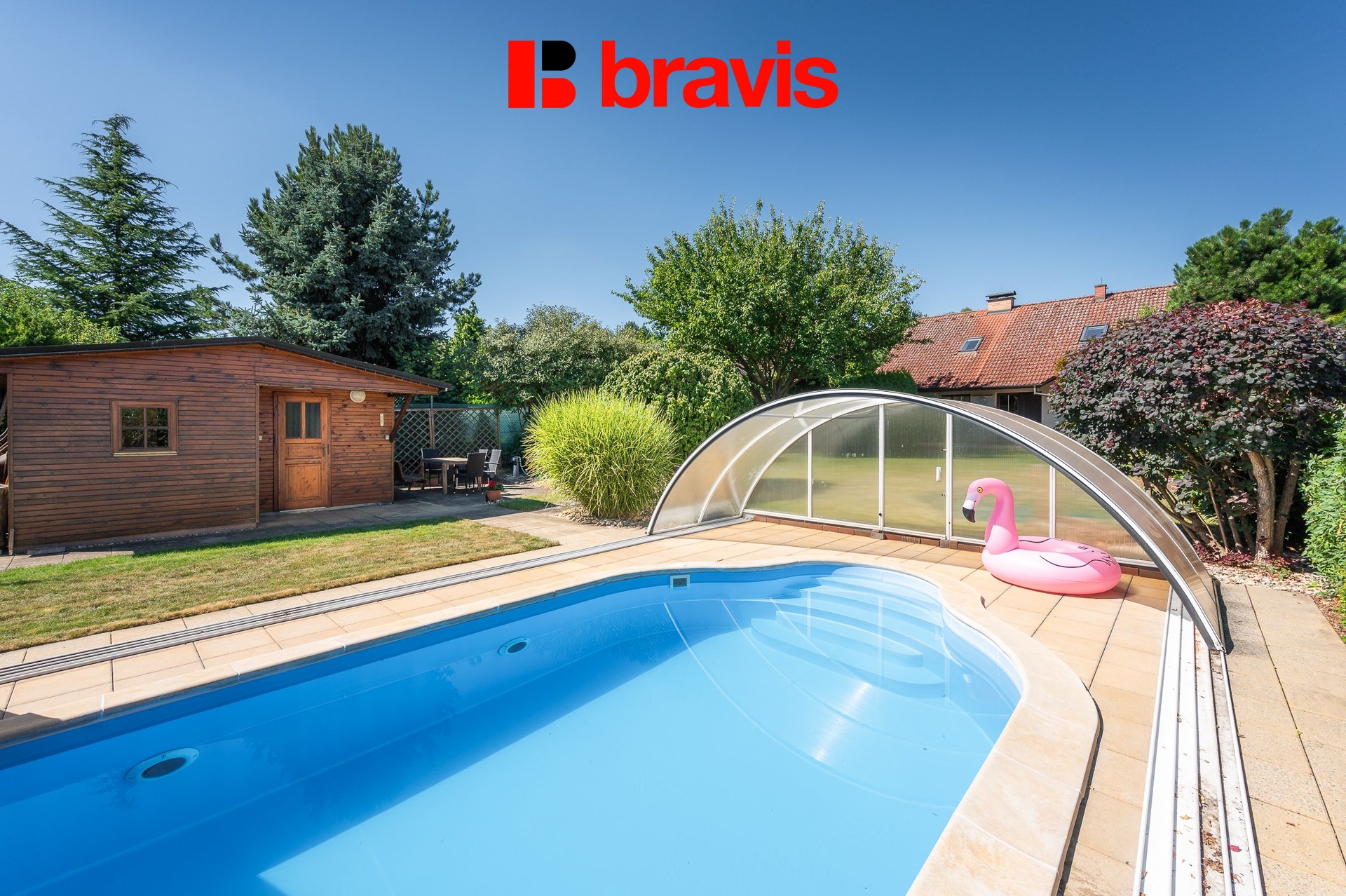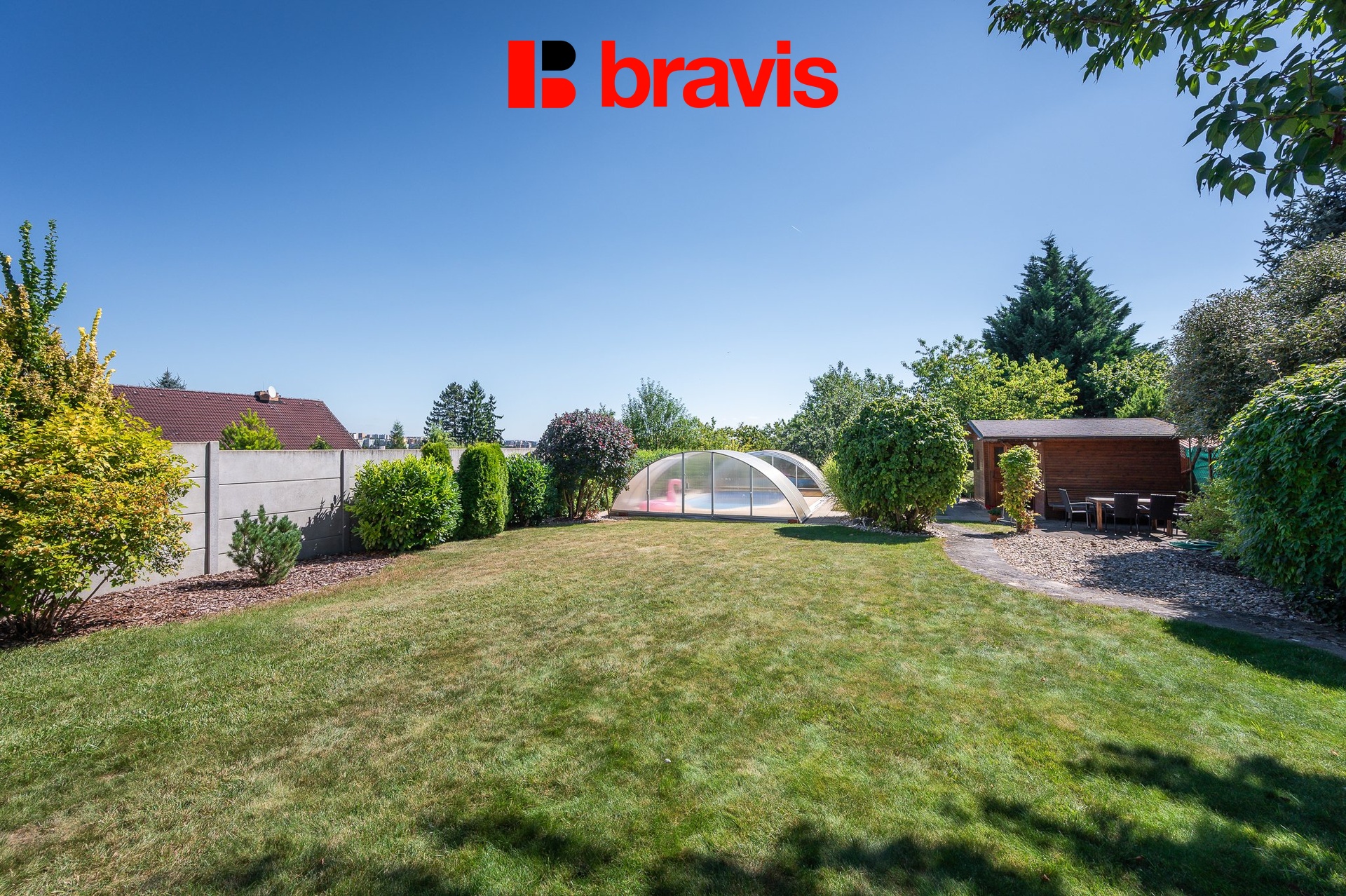 • zahrada včetně zavlažování, bazén s krytím a sauna