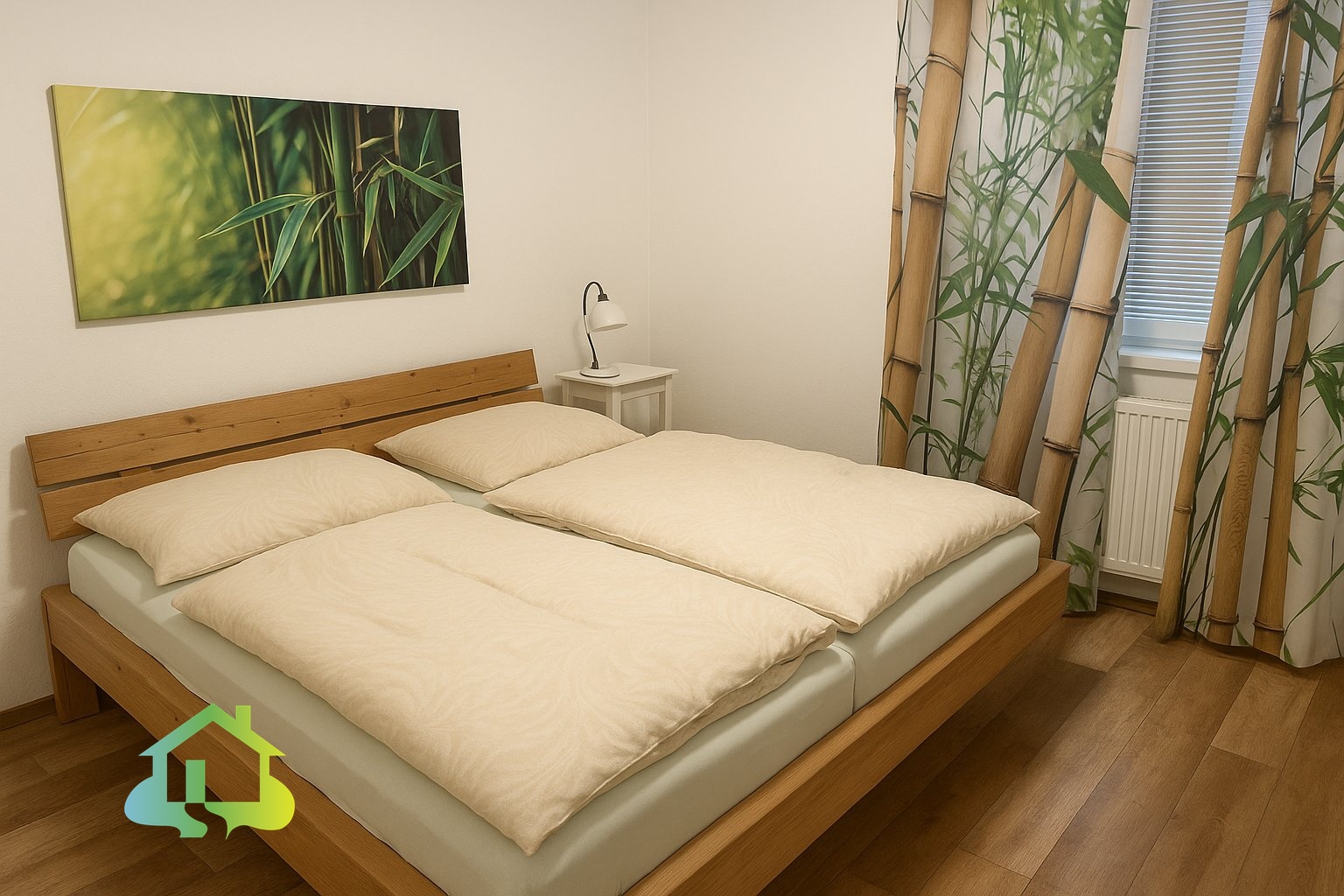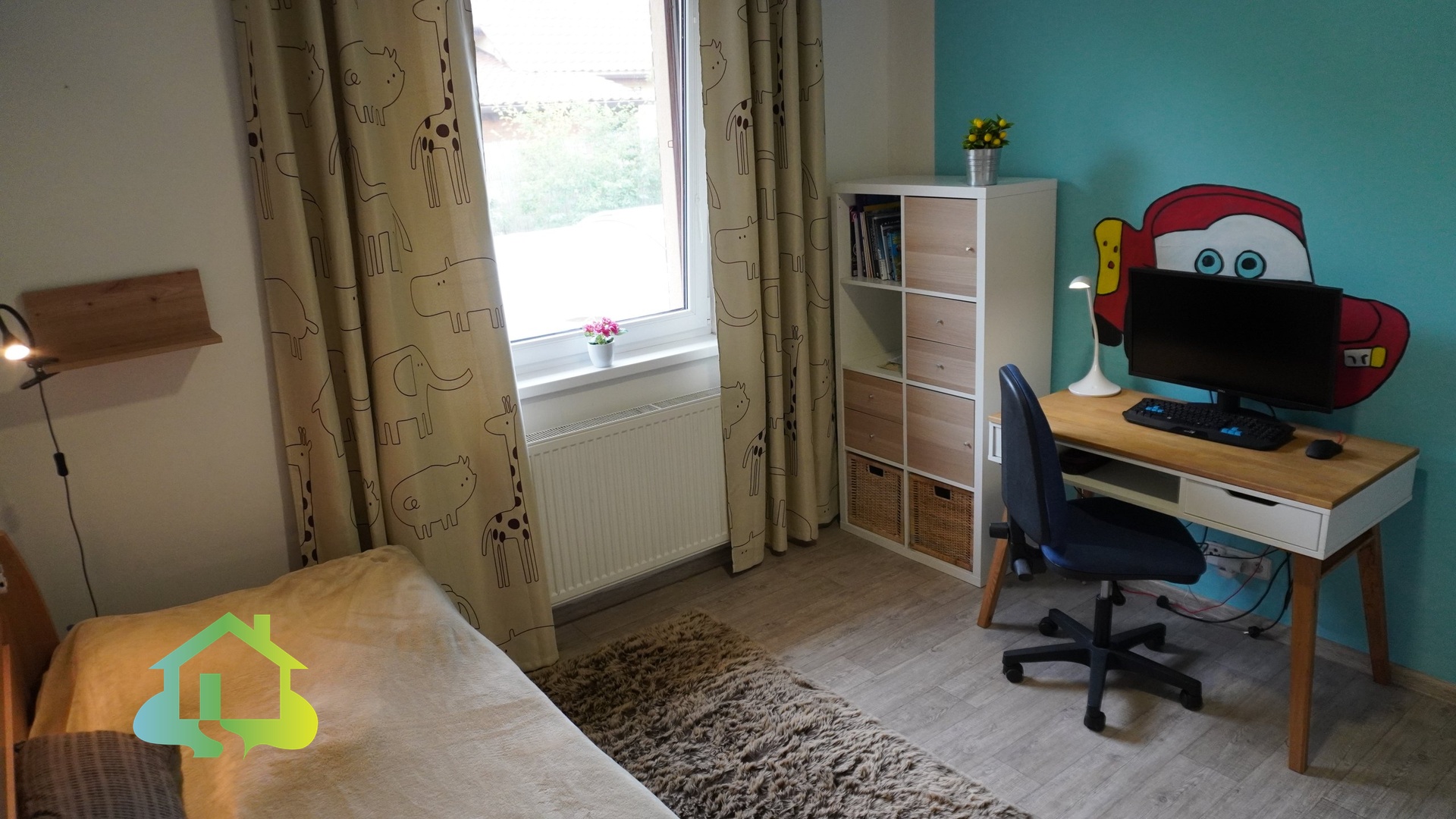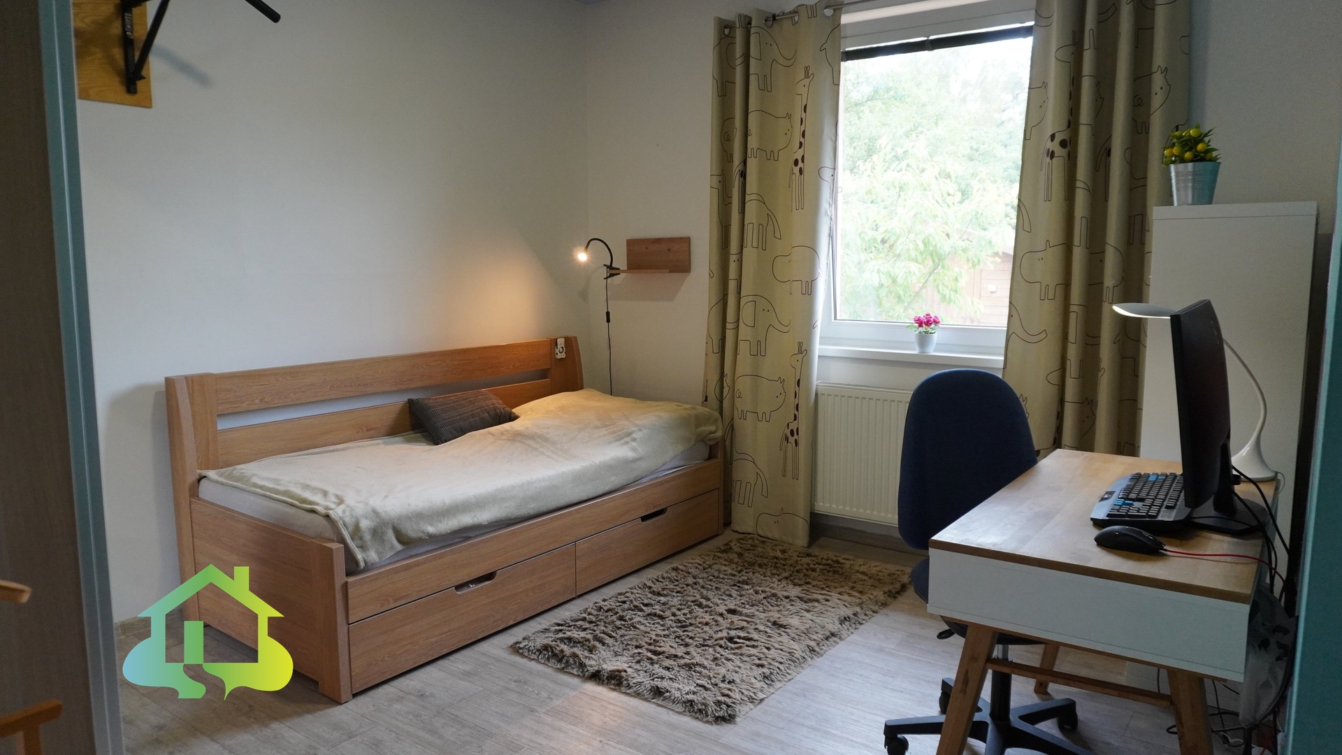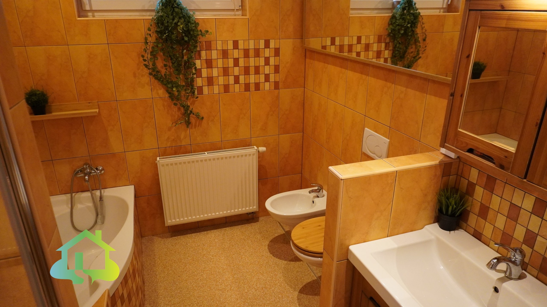 Podlahy jsou řešeny kombinací PVC a keramické dlažby. Plastová okna jsou osazena izolačními dvouskly.