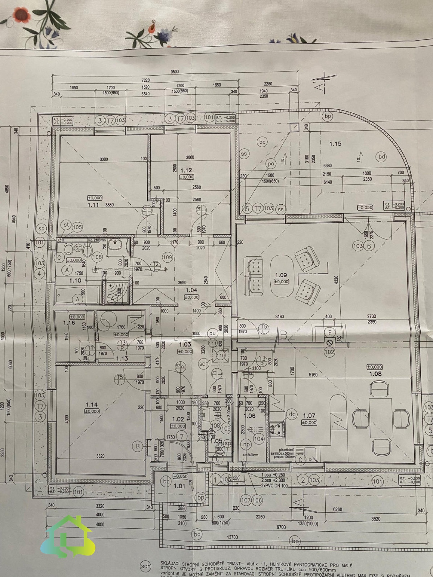 Dům má prostornou pochozí půdu, kterou lze po úpravě využít jako obytné podkroví (nyní přístupné stahovacími schody a slouží jako úložný prostor).